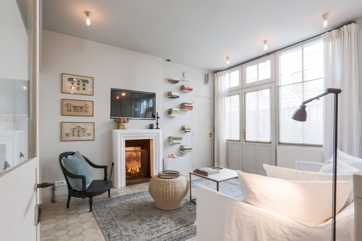 Mirno tradicionalno pariško stanovanje v kamniti stavbi iz 19. stoletja in ulici v 5. nadstropju z dvigalom : dvoposteljna dnevna soba, spalnica, popolnoma opremljena kuhinja (pomivalni stroj in pralni/sušilni stroj), balkon in zasebni podzemni park (4 minute hoje). Oblekla sem ga in okrasila z ljubeznijo, vključno s slikami. V soseski, ki je živahna s trgovinami in restavracijami, je od podzemne železnice oddaljena 2 minuti hoje, od katere so vse pariške znamenitosti oddaljene 13-30 minut.