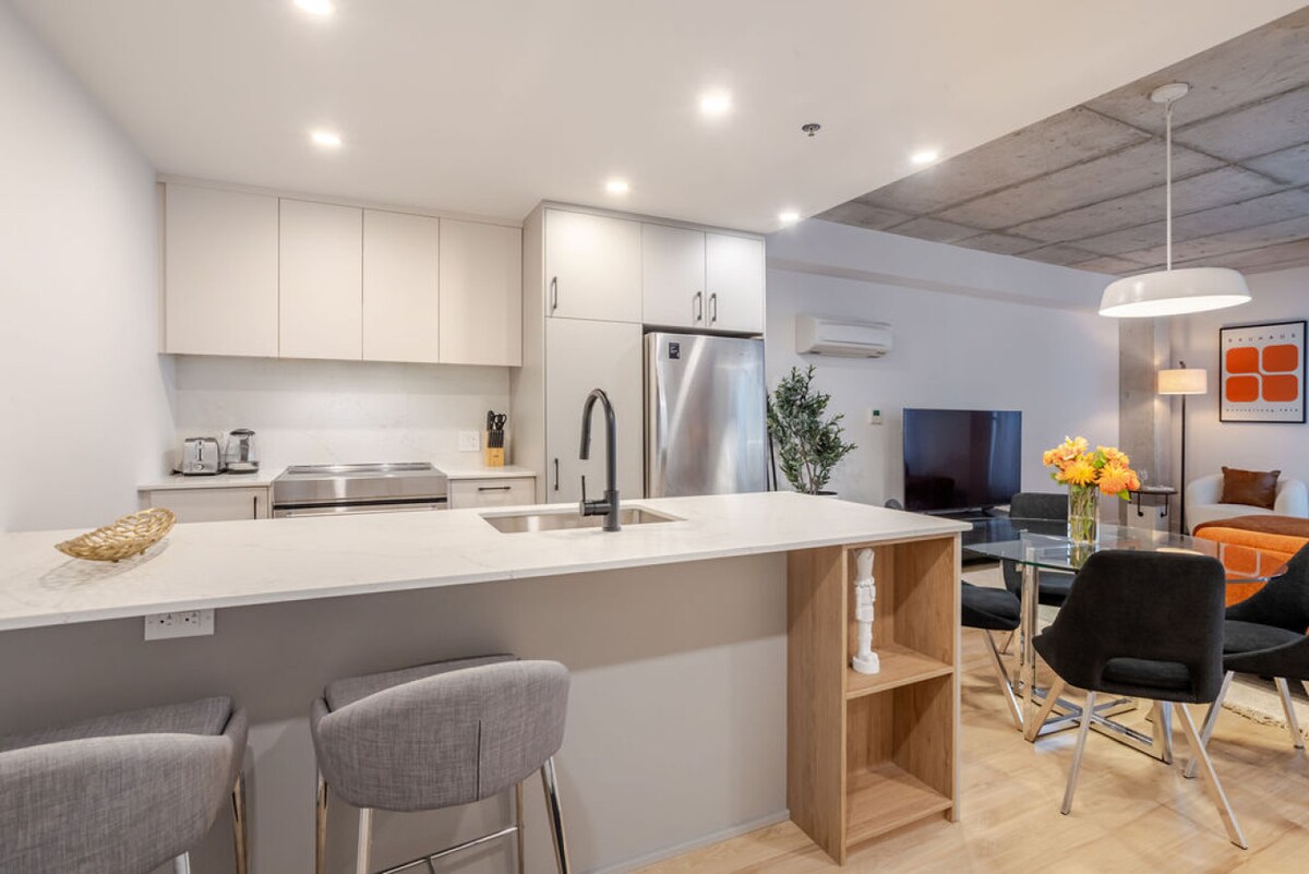 Dobrodošli v našem osupljivem sodobnem 2-sobnem predelanem stanovanju v središču Montreala, le nekaj korakov od starega pristanišča. To elegantno predelano stanovanje se ponaša s prefinjeno zasnovo odprtega koncepta, vrhunskimi oblogami in popolnoma opremljeno kuhinjo, ki je kot nalašč za domače jedi. Sprostite se v razkošnih spalnicah s plišasto posteljnino in se sprostite v elegantnem bivalnem prostoru. Z vrhunskimi restavracijami, butiki in nočnim življenjem na vašem pragu izkusite popolno mešanico udobja in mestnega vznemirjenja!