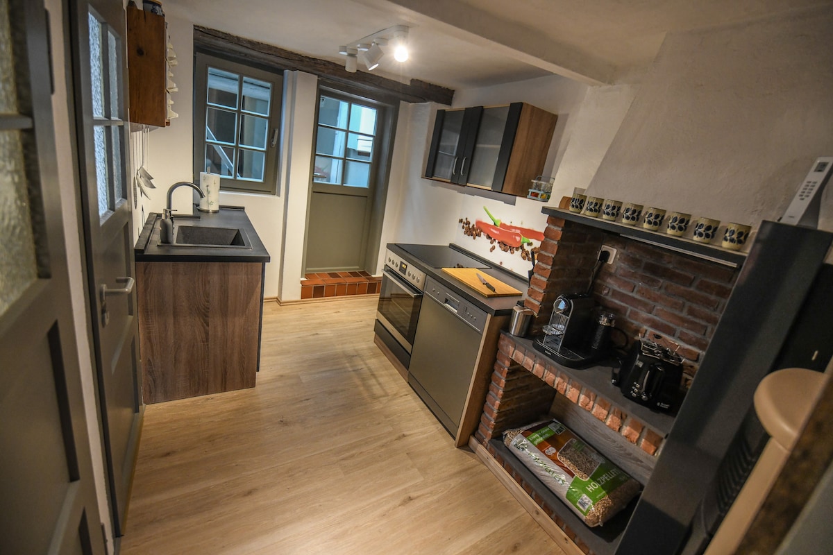 Rustikalno zatočišče v vinski regiji - vaše udobno zatočišče Dobrodošli v našem očarljivem stanovanju , ki je idealno za sproščujoče oddihe! Uživajte v prijetnih večerih pred kaminom ali v »domačem kinu«. Rustikalno vzdušje in slikovita vinska regija ustvarjata edinstveno doživetje. Posebnost našega stanovanja, ki je bilo na novo prenovljeno z ljubeznijo, je majhna frankfurtska kopalnica (višina prhe = 2,10 m). Sprostite se in uživajte v bivanju !