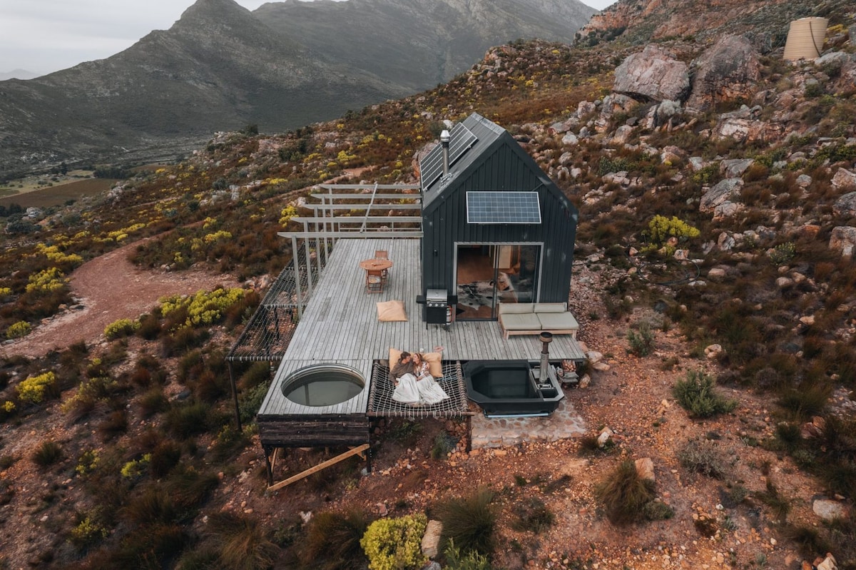 Kick back and relax in this calm, stylish cabin far away from everything. Situated on the edge of the farm, on the slopes of the Porceleinberg. It operates completely off the grid. On the porch/deck you'll have a 180* view of the valley towards the Elandsberge and the Winterhoekberge beyond. In spring the valley will be coloured in patches of green (wheat fields) and yellow (canola fields).There are more than 130+ species of birds on the farm, as well as small antelope.