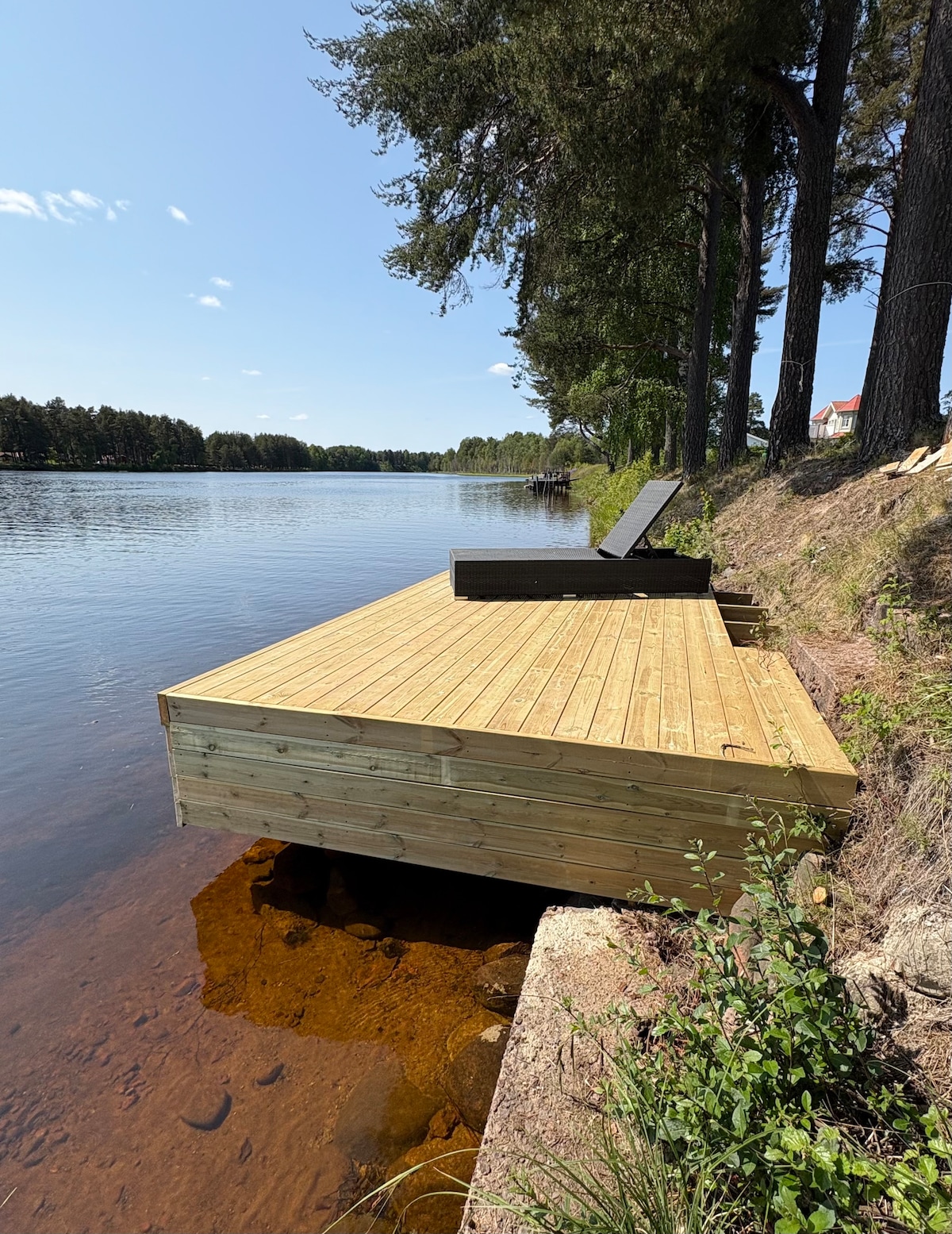 Stocktimmerjeva hiška na deželi ob jezeru.
