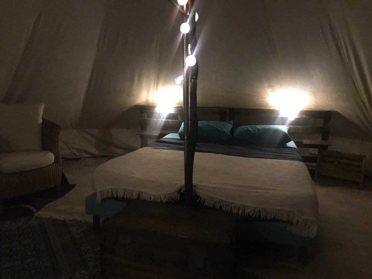 Uživajte v zvokih gozda in potoka med bivanjem v tem edinstvenem bivališču. Ta vrhunski kamp vas bo očaral s svojim udobjem, še posebej pa z izjemno naravno okolico. Šotor s pravo 160-centimetrsko posteljo v prijetnem boemskem vzdušju. Zasebna kopalnica. Zajtrki so vključeni. Za prijetne večere je na voljo ognjišče (razen v obdobjih suše). Za 30 € lahko dodate enourni dostop do glavnega masažnega bazena na posestvu.
