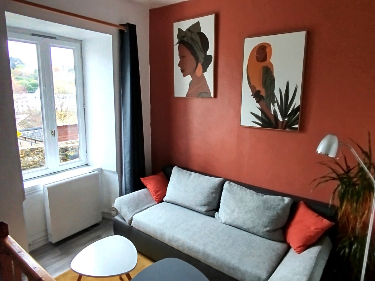 !! Spodnja notranja ključavnica se ne sme uporabljati!! Odkrijte naše stanovanje v središču mesta Morlaix. V zelo mirnem majhnem stanovanju v 3. nadstropju je naša nastanitev blizu opreme in ima dovolj brezplačnega parkirišča. Na voljo je za najem za 4 osebe, naša nastanitev ima dve spalnici z zakonsko posteljo. Ne oklevajte za več informacij, z veseljem vam povem o našem malem kokonu. Hišni ljubljenčki so dobrodošli 🥰🥰