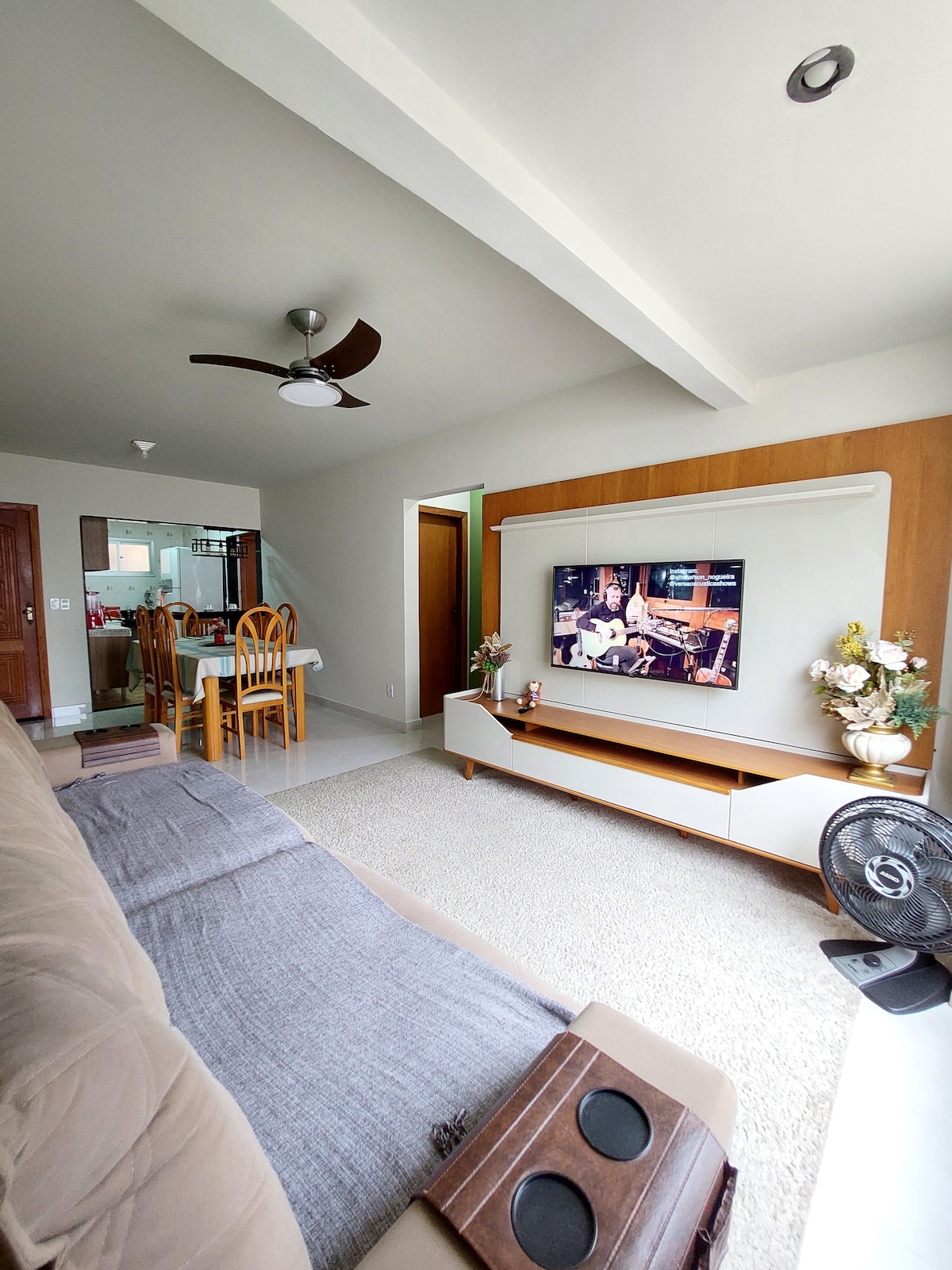 Prostorna hiša na najbolj priljubljeni plaži v Guarapariju, ki se nahaja v četrtem bloku plaže, 400 metrov od plaže. V bližini pekarn in supermarketov. Air House s 4 spalnicami in zunanjim apartmajem. Popolnoma neodvisen vhod. Porcelanska tla. Posteljnina in kopalno perilo sta vključena. Opremljena kuhinja, stropni ventilatorji s 3 spalnicami. Zunanji prostor z žarom, televizijo z vsemi brezplačnimi kanali in velikim bivalnim prostorom. Wi-Fi je čist. Garaža za dve majhni vozili.