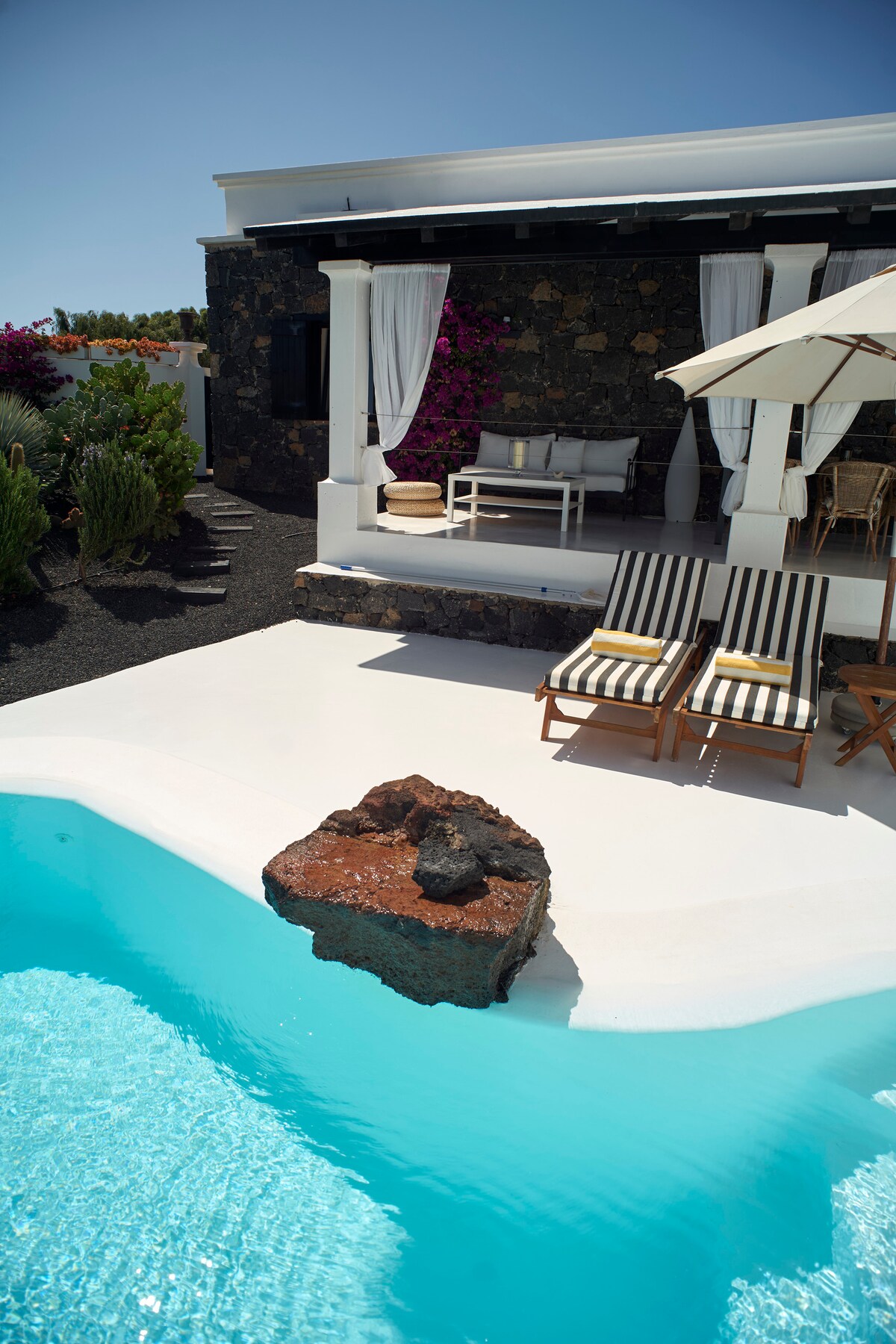 Lepa neodvisna vila v Playa Blanci. Ob vznožju vulkana Montaña Roja, ki je tih in obrnjen proti jugu. Tropski vrt na črni vulkanski scoria in bazen, ogrevan na 28 °C. Zunanja prha. 2 pokriti terasi z vrtnim pohištvom, ležalniki, balijsko posteljo in pokrito zunanjo jedilnico. Zasebno parkirišče. Vhod, velika dnevna soba, dobro opremljena kuhinja, 1 spalnica v spalnici z marmorno kopalnico in garderobo, 1 dvoposteljna spalnica z garderobo in marmorno kopalnico 50 Mb/s Wi-Fi, Smart TV 55th.