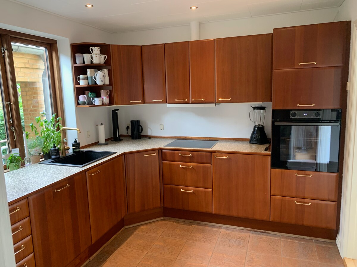 Bivajte v bližini gozda in plaže ter z vrtom vse do šolskega jezera z velikimi zelenimi površinami. Dvorišče z jedilnim pohištvom in kaminom. Bivali boste v kletnem nadstropju, ki ga boste imeli samo zase, z 2,05 metri do stropa. Velika soba z jedilno mizo in zakonsko posteljo. Majhna soba s posteljo, široko 120 cm. Velika nova kopalnica s prho. Čajna kuhinja s hladilnikom in mini pečico. 200 metrov do pekarne. 1,7 km do ulice za pešce. 3,6 km do počitniškega parka Jesperhus. 300 m do fitnes centra, Padelhala in igrišča.