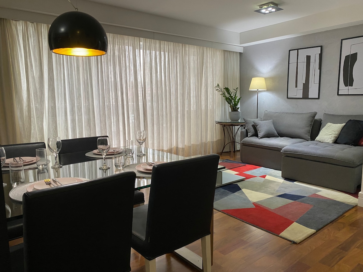 Elegantno in dobro opremljeno stanovanje v zgornjem nadstropju s panoramskim razgledom na São Paulo. Le 3 minute od podzemne železnice Brooklin, 6 minut od ameriškega konzulata in 10 minut od letališča Congonhas. Zakonska postelja (Queen EMMA), Nespresso aparat, filter za ohlajeno vodo, kuhinja in pralnica. Uživajte v bazenu, telovadnici in prostoru za prosti čas. 24-urni Carrefour čez cesto s kavarnami, pekarnami in tržnico Mambo je le nekaj korakov stran.