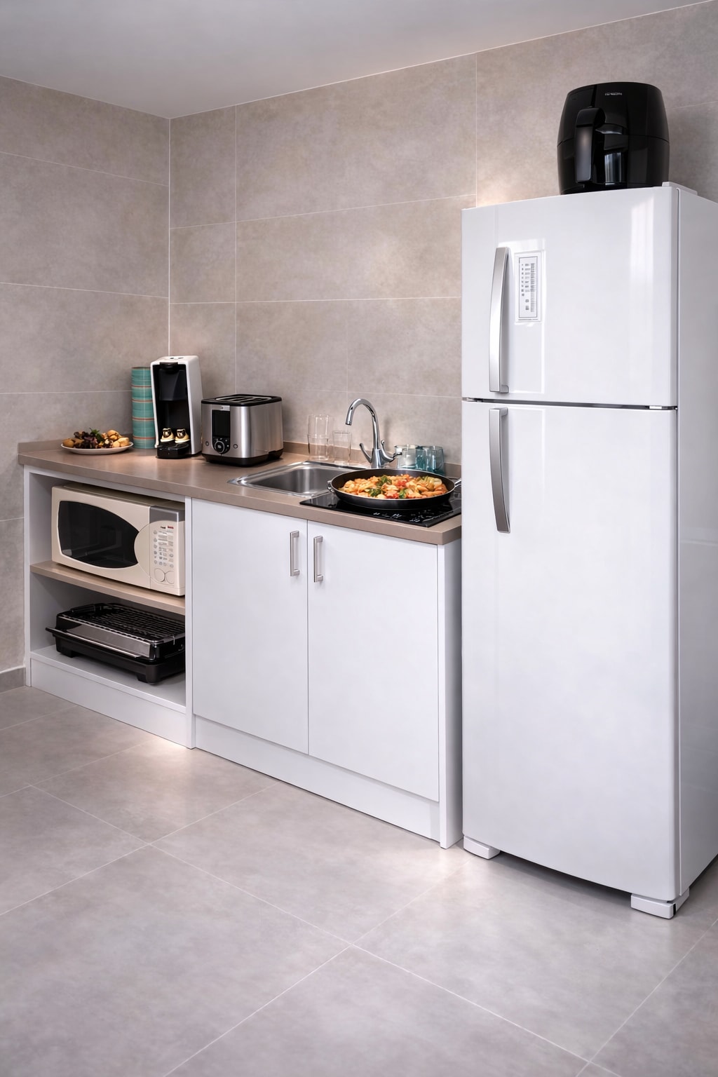 No topo do Copan, de frente para a Avenida Ipiranga, este estúdio de 44m² nos convida a flutuar sobre a paisagem de São Paulo. A sensação de leveza vem do piso em pastilhas, que, após a reforma, se estende por todo o interior do apartamento, criando continuidade visual e integração com o breeze característico da fachada norte.