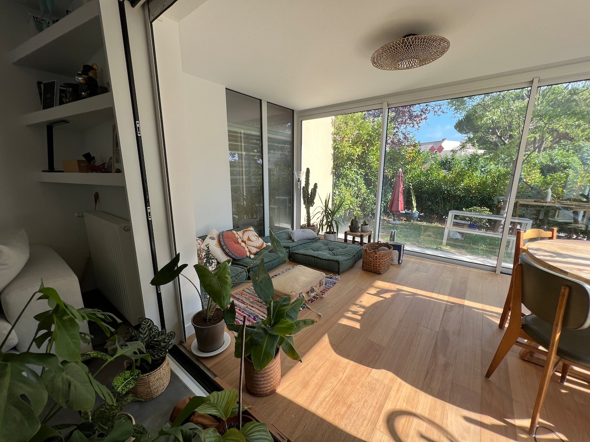 Stanovanje velikosti 48 m2 + terasa 20 m2, klimatizirano Dve sobi nad našo hišo, ločen vhod, velika dnevna soba z raztegljivim kavčem zelo udobna, spalnica z zakonsko posteljo (160 x 200) s garderobo, italijanska kopalnica, zelo velika terasa, mirna, qq nekaj minut od morja, od postaje sncf v Cannesu la Bocca, parkirno mesto. TV 107 cm freebox kanali in netflix.