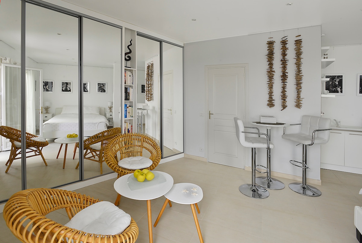 Studio v slogu mezonete se nahaja v zasebni namestitvi z ločenim vhodom, 5 minut vožnje z avtomobilom od tehnološkega parka Sophia-Antipolis, 5 minut od trgovin z živili in 20 minut od središča Cannesa. Občina Mougins je uvrščena med »turistična letovišča« in »odlične destinacije«. Idealna lokacija za letovišče, na križišču med Cannesom, Grassom, Antibesom in Nico. Stanovanjsko območje, avtomobil je zelo priporočljiv ali celo nujen.