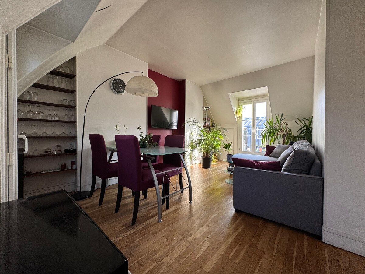 Séjour cosy sur les toits des Batignolles