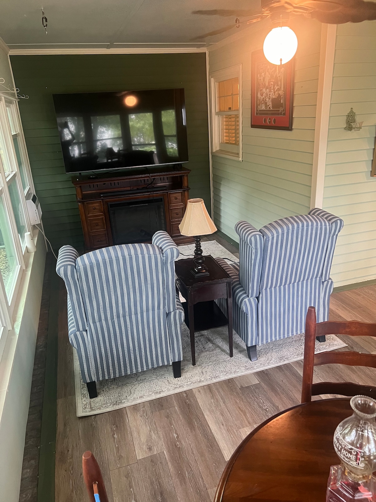 To je čudovito 185 kvadratnih metrov. Kopalnica 3 BR / 2 z brd, LR, DR, kuhinjo in pralnico ter polno verando z gugalnico in rockerji, zadnja terasa in pergola s sedeži in gugalnico ter 2 avtomobilski nadstrešek in makadamski dovoz na 5 hektarjih, obdan s kmetijo loblolly borovcev. Imamo hiter internet/WI-FI. Na voljo so tudi 3 pametni televizorji z DVD-predvajalnikom in družabne igre. Naša kuhinja je dobro založena za večino potreb po kuhanju.