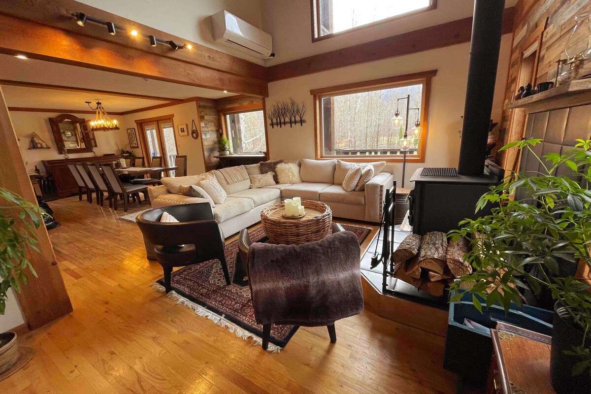 Zasebni oddih, ki se nahaja na hektarju, obkroženo z gozdom in z razgledom na goro Currie. Apartma je obrnjen južno v spodnjem nadstropju hiše z zasebnim dovozom in vhodom. Dekoracija je rustikalna, vendar sodobna z veliko naravne svetlobe, zato je poleti hladna in zračna, pozimi pa prijetno ob ognju. Zabava vključuje gledališče s 85" 4K TV + 7.1 okolico, PS5 (1 daljinski), pokovko, mehurčkasti hokej, biljard, igre, savno + 5-člansko masažno kad. Nahaja se 45 minut N od Whistlerja. IG: @SovaRidgeLodge