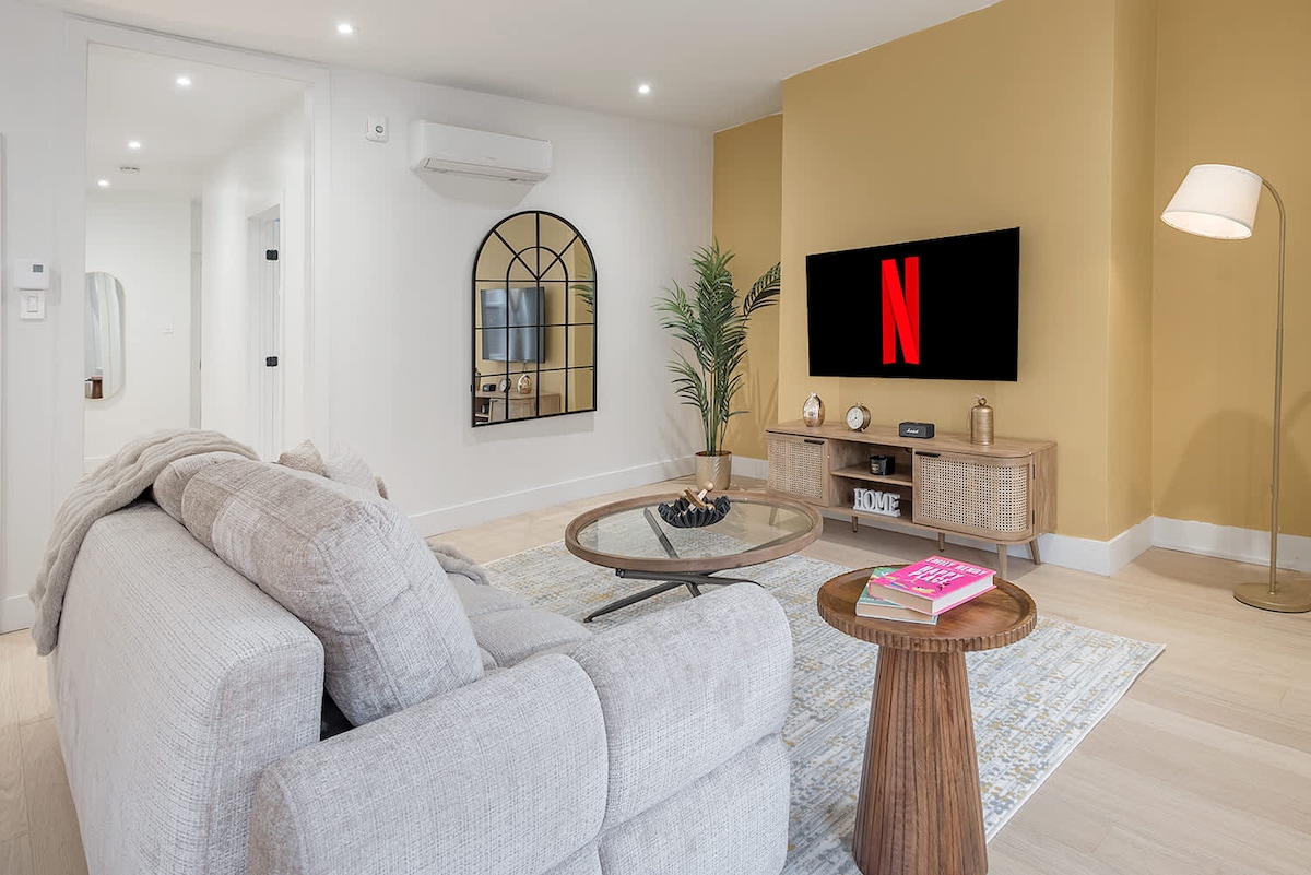 KEY FEATURES: ☀ Guaranteed Plush bed ☀ 1 full bathroom stocked with essentials + fresh towels ☀ Fully equipped kitchen with cookware + modern appliances ☀ Bright open-concept living area with Smart TV ☀ In-unit washer + dryer for convenience ☀ High-speed Wi-Fi—ideal for work or streaming ☀ Stylish interior curated by a professional designer ☆☆ LIVING AREA ☆☆ Unwind in the cozy, light-filled living room with large windows, comfortable seating, and a Smart TV with streaming apps. The space is per