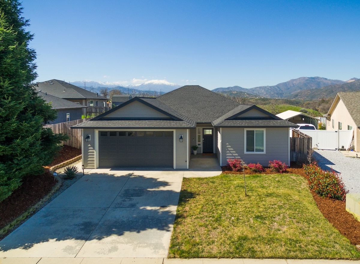 V mestu, vendar se počutite kot na podeželju! Zasebno, varno veliko parkirišče in terasa z ognjiščem. Vsako udobje je upoštevano z velikimi velikimi spalnicami. Kuhinjska niša po meri z nerjavnimi napravami in kremenčevimi pulti. Linearni plinski kamin, betonsko ognjišče po meri, 55-palčni HDTV s prostorskim zvokom in vgrajene omarice. Prevelika prha iz ploščic po meri s strešnim oknom in vročo vodo brez rezervoarja. Centralno ogrevanje in polnilnik za električna vozila klimatske naprave! Enostaven vstop s tipkovnico. Blizu I-5 in CA-44. Prenočišče brez hišnih ljubljenčkov. COR Permit SDD-2025-00074