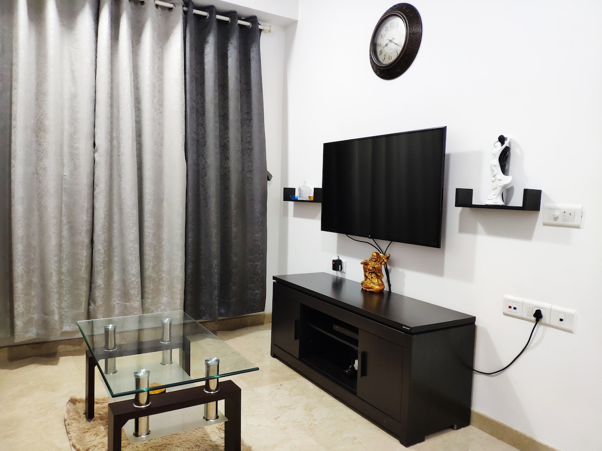 Warm, Modern & Cosy Home! + Entire apartment (1 Living, 1 Bedroom, 1 Kitchen & 1 bathroom), Area - 382 Sq feet + Complete privacy & safety. + KING Size Bed, Wardrobe & Cloth Iron + Sofa, TV, Dinning/Coffee table + Kitchen equipped with RO water filter, Microwave Oven, Washing Machine, +Electric Kettle etc. +Ideal place for couples , business travellers & small family. + Its located on 9th floor. Free Parking at PODIUM level, slot no- 21