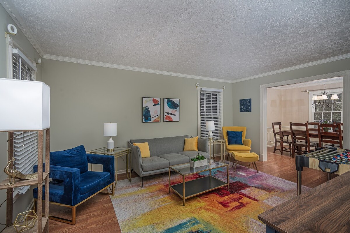 Zabavno in preprosto življenje v mirni skupnosti, 8 km od Stone Mountaina. Sprehodite se do parka, vozite kolesa, ribarite, igrajte namizni nogomet ali uživajte na verandi. Prenočišče ima 4 spalnice/5 postelj, vključno z brlogom z raztegljivim kavčem, 2,5 kopalnicami, 2 kavčema, pralnim/sušilnim strojem, Wi-Fi-jem in mizo za namizni nogomet. Vaš drugi dom! V sklopu namestitve je mini-hiška za 4 osebe. Mini-hiška je znižana na 59 $/noč, ko je ta hiša v najemu. Če potrebujete dodaten prostor, se pozanimajte o najemu obeh prenočišč.