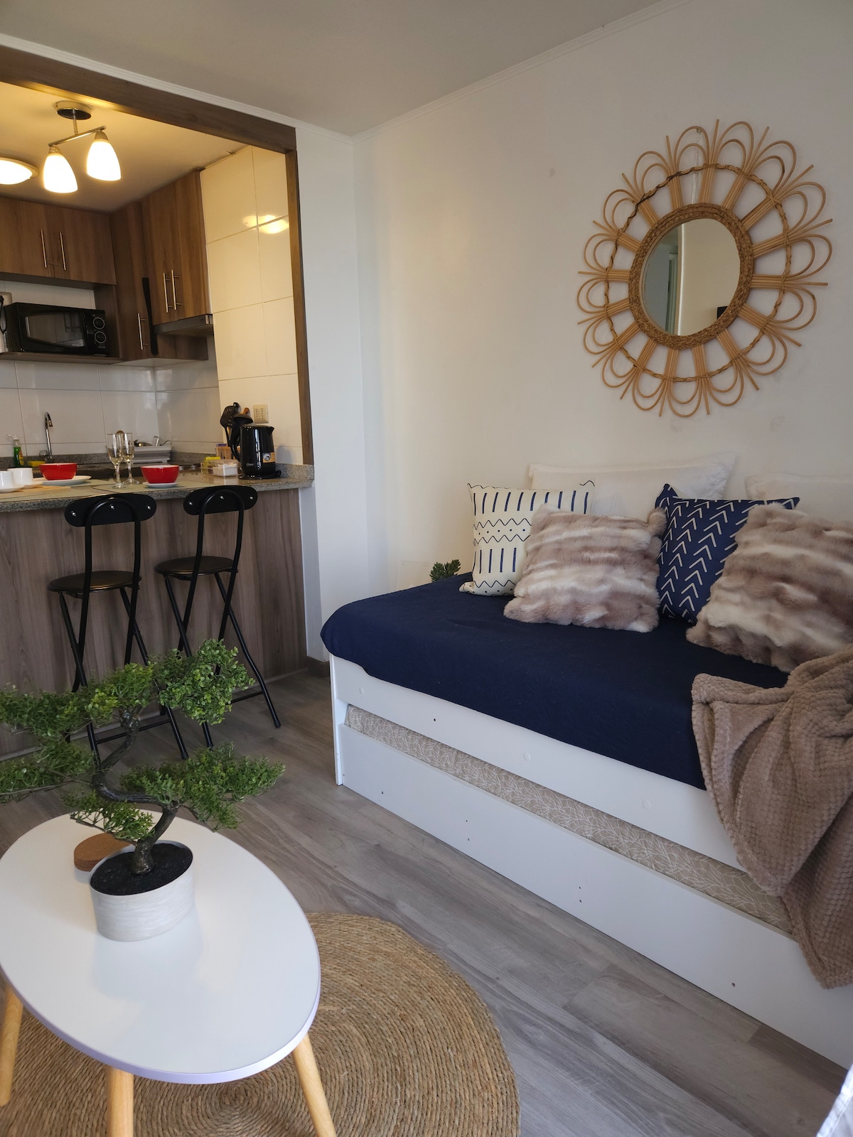 Uživajte v Santiagu v tem novem in funkcionalnem stanovanju, ki je idealno za 2 osebi (+1 na futonu)! Nahaja se le nekaj korakov od arene Movistar, zabaviščnega parka Fantasilandia, kluba Hípico in univerzitetne četrti, zato boste imeli vse na dosegu roke: podzemno železnico, parke, panoramske razglede in dobro prometno povezavo. V celoti opremljeno tako, da lahko samo prispete in uživate. Idealno za oddih, koncerte ali poslovna potovanja.