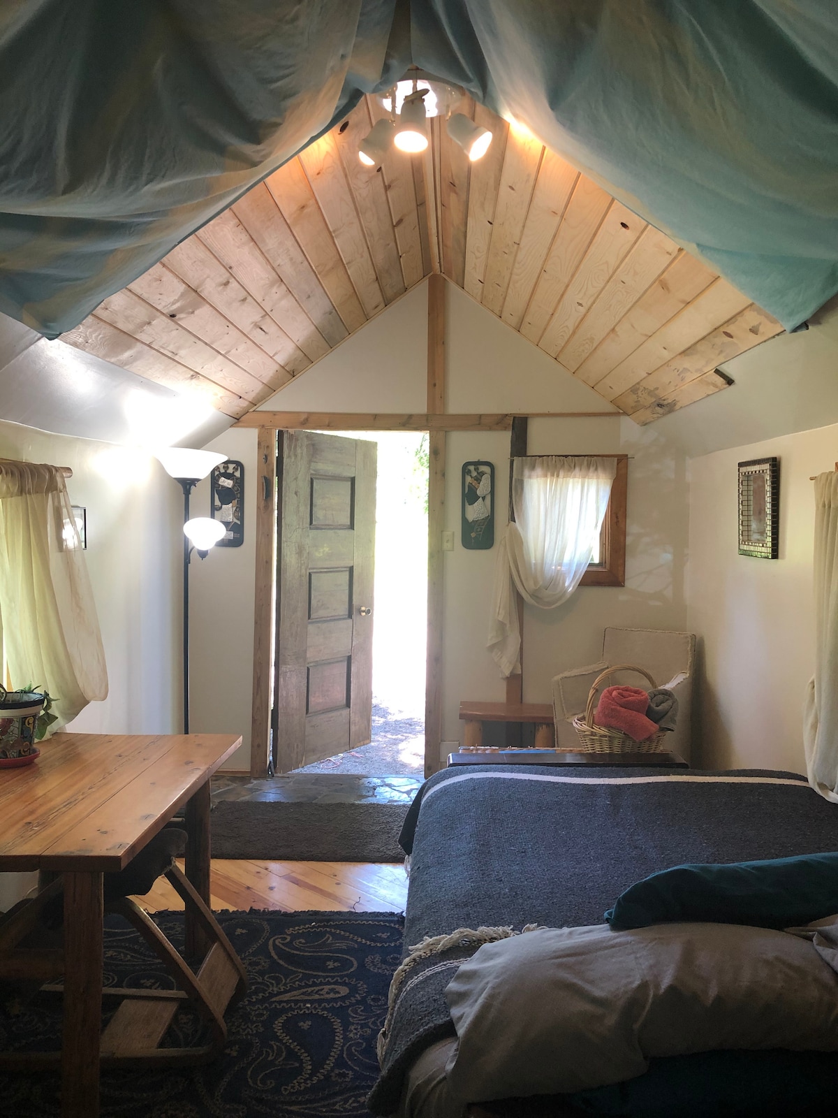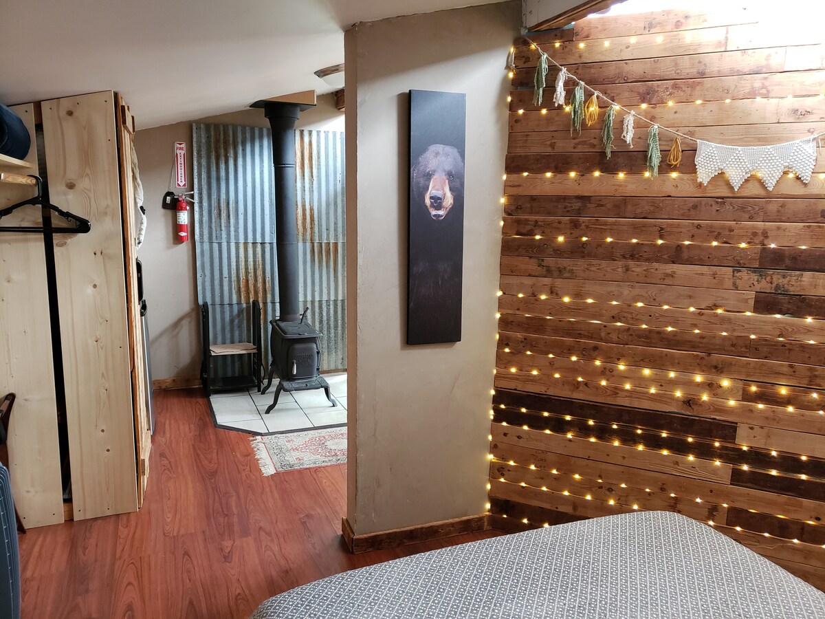 Rustikalna koča, ki je bila prvotno zgrajena leta 1913, je bila oživljena leta 2016. Skromna koča, polna šarma in udobja. Odličen oddih. To je glamping v najboljšem primeru. Oprema vključuje kavni lonec, kavo, klimatsko napravo, hladilnik, električni kamin, žar in mizo za piknik. Posteljnina, dodatne odeje. Stranišče/prha je oddaljena 20 korakov od koče. Ogrevan je vso zimo. Zaklenjena zasebna prha in stranišče. Nudimo W/D za uporabo. Uživajte v 16-palčni jurti z ognjiščem in stoli. Savna je na voljo za uporabo