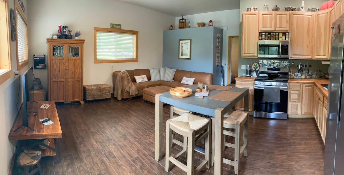 Čista in svetla sodobna garsonjera...to je popoln način, da se izognete zasedenosti življenja in izkusite osvežujoč oddih. Tukaj ne boste našli televizorja (ne skrbite... na voljo je Wi-Fi), ko pa se ne sproščate ob kaminu, so na voljo odlični kraji za raziskovanje okolice...Schweitzer Mountain Resort je le 30 minut vožnje in v središču mesta boste našli veliko odličnih restavracij...mnoge od njih z živo glasbo. Naša garsonjera je zasnovana za dve osebi, na zahtevo pa lahko sprejmete tretjega gosta.