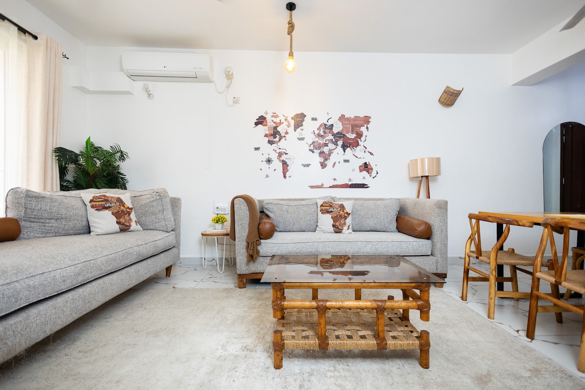 Sodobno stanovanje na lokaciji Prime Nyali – To čudovito stanovanje se nahaja v osrčju Nyalija, le 3 minute hoje do plaže in ponuja udobje in priročnost tako za popotnike kot za dolgotrajne prebivalce. Uživajte v preprostem dostopu do vrhunske opreme: Le streljaj od znamenitega hotela Voyager Beach na plaži Jumeira. Obkroženi z lokalnimi priljubljenimi, kot so Masai Beach Koroga, Carrefour Links Road in Quickmart Oddaljenost od bolnišnice Premier peš, kar zagotavlja mir