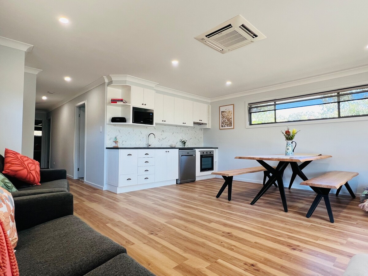 Dobrodošli v Kangaroo Gully. Popolnoma nova dvosobna hiša z dvema kopalnicama, ki se nahaja v drevesih evkaliptusa v čudovitem Mudgeeju. Idealno za romantičen konec tedna, vikend s prijatelji ali družinami z otroki. Uživajte v sproščanju, branju knjige ali čudovitem razgledu na teraso. Morda boste celo imeli srečo, da boste videli kenguruja ali čudovito življenje ptic, ki mu kenguruji pravijo dom!