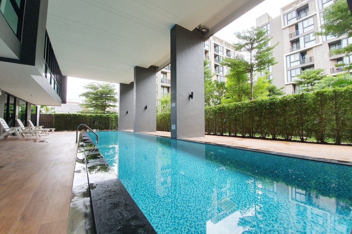 Dobrodošli v elegantnem prenočišču v osrčju Nimmanskega okrožja. Ta redko najdeno kotno stanovanje v velikosti 41 m² v 6. nadstropju ponuja prostorno udobje in čisto eleganco. Ob sončnem zahodu uživajte v mirnem razgledu na goro Doi Suthep ⛰. Večeri so kot nalašč za prijetne filmske večere na OGROMNEM 60-palčnem pametnem televizorju z mini kino dvorano. Udoben raztegljiv kavč lahko sprejme dva dodatna gosta za brezskrbno družinsko potovanje. Nakupovalna središča One Nimman in Maya Mall sta oddaljena le nekaj minut hoje. Uživajte v bazenu in fitnesu za popolno in sproščujoče bivanje.