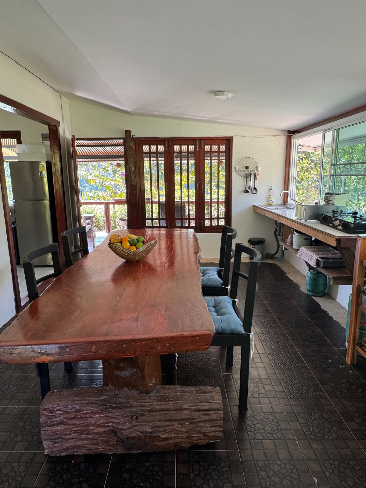 Tikova koča zadaj na dveh hektarjih tropskega sadja z velikimi količinami miru in tišine. Oh, in zelo udoben Adirondack stol, več tajskih blazin, hladilnik, ki ohranja pijače za odrasle hladne, pravilno bralno luč in pogled na hribe v daljavi.