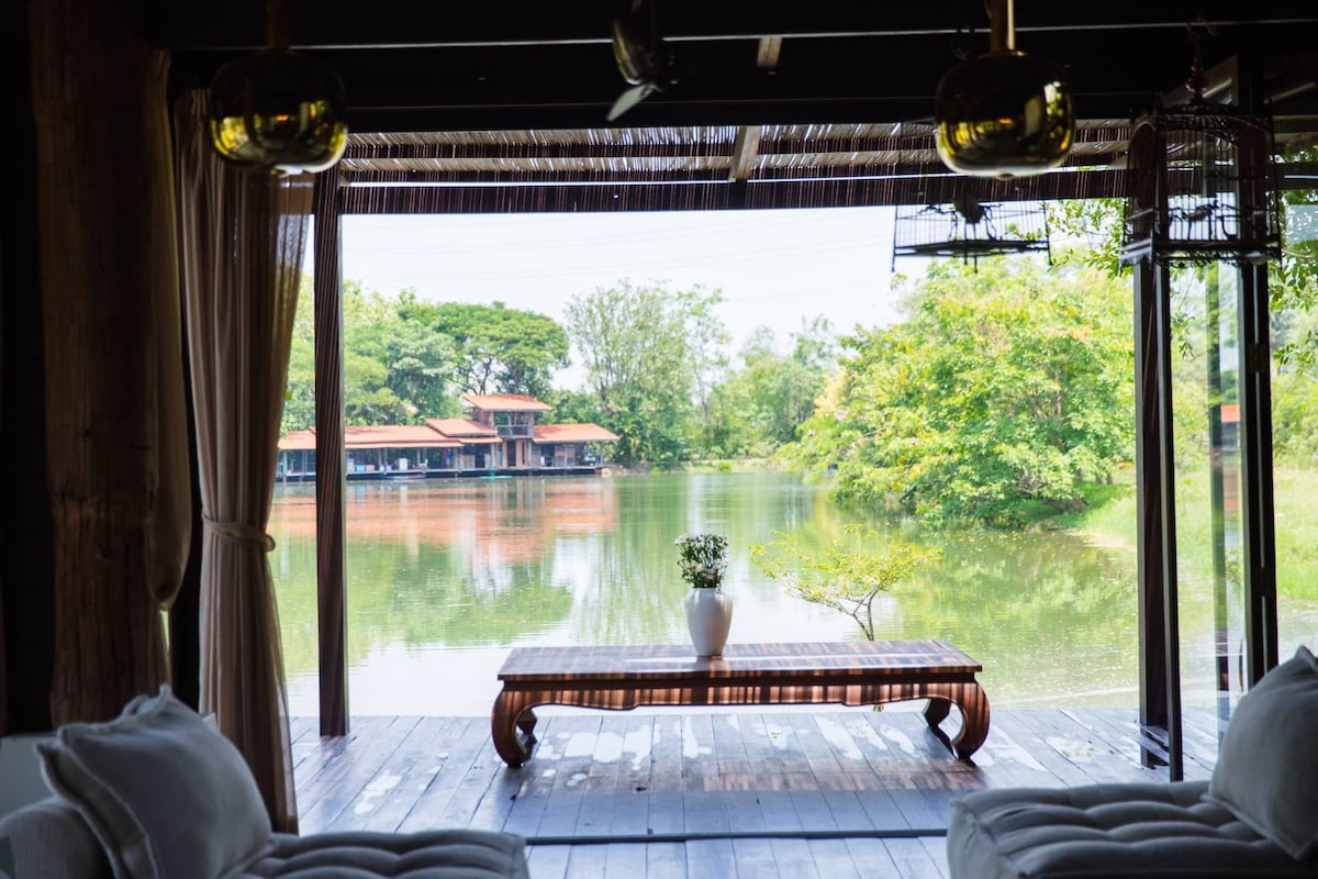 This Lanna house is reconstructed from three ancient Lanna house. It is located in front of a big lake, outside is very peaceful and zen. Inside is very European and comfortable. If you look for a hideaway resort, here is definitely what I would recommend you to stay. Swimming pool Solar power systems are used 80% self-produced electicity There is a chicken, goat, deer within the park and beautiful nature. Fishing is possible in the lake. 25 min. from , airport and city.