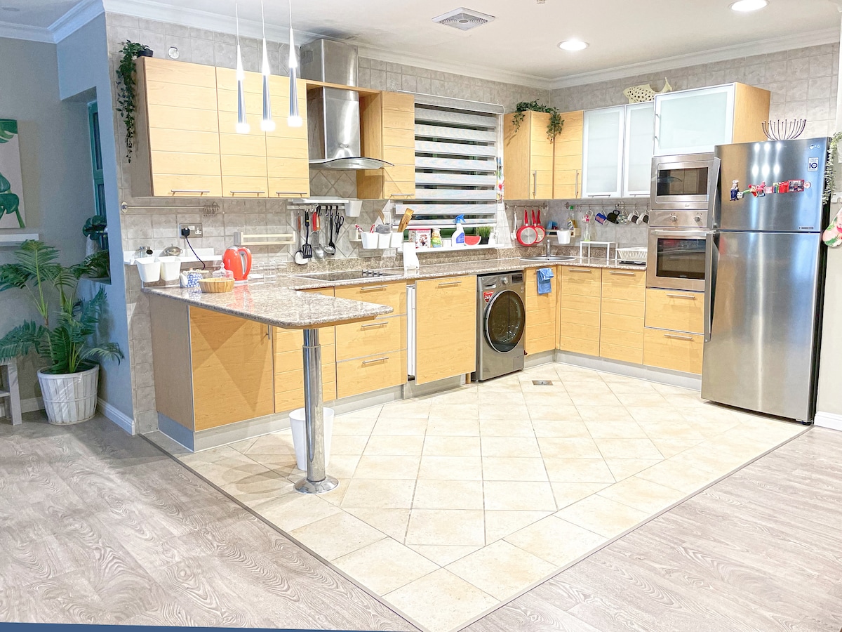 Stanovanje se nahaja na območju Janabiyah To je mirno območje, ki je oddaljeno od motenj prestolnice, hkrati pa ga oskrbujejo vse potrebe, kot so: 24-urni supermarket, restavracije in prostori za zabavo. Območje je najprimernejša izbira za družine in vse, ki so radi stran od hrupa, hotelov in njihovih dejavnosti Mirno in s postrežbo, v bližini King Fahd Causeway Kompleks Liwan : 8 minut vožnje z avtomobilom Okrožje 1 : 9 minut vožnje z avtomobilom, Območje Seef: 15 minut vožnje z avtomobilom