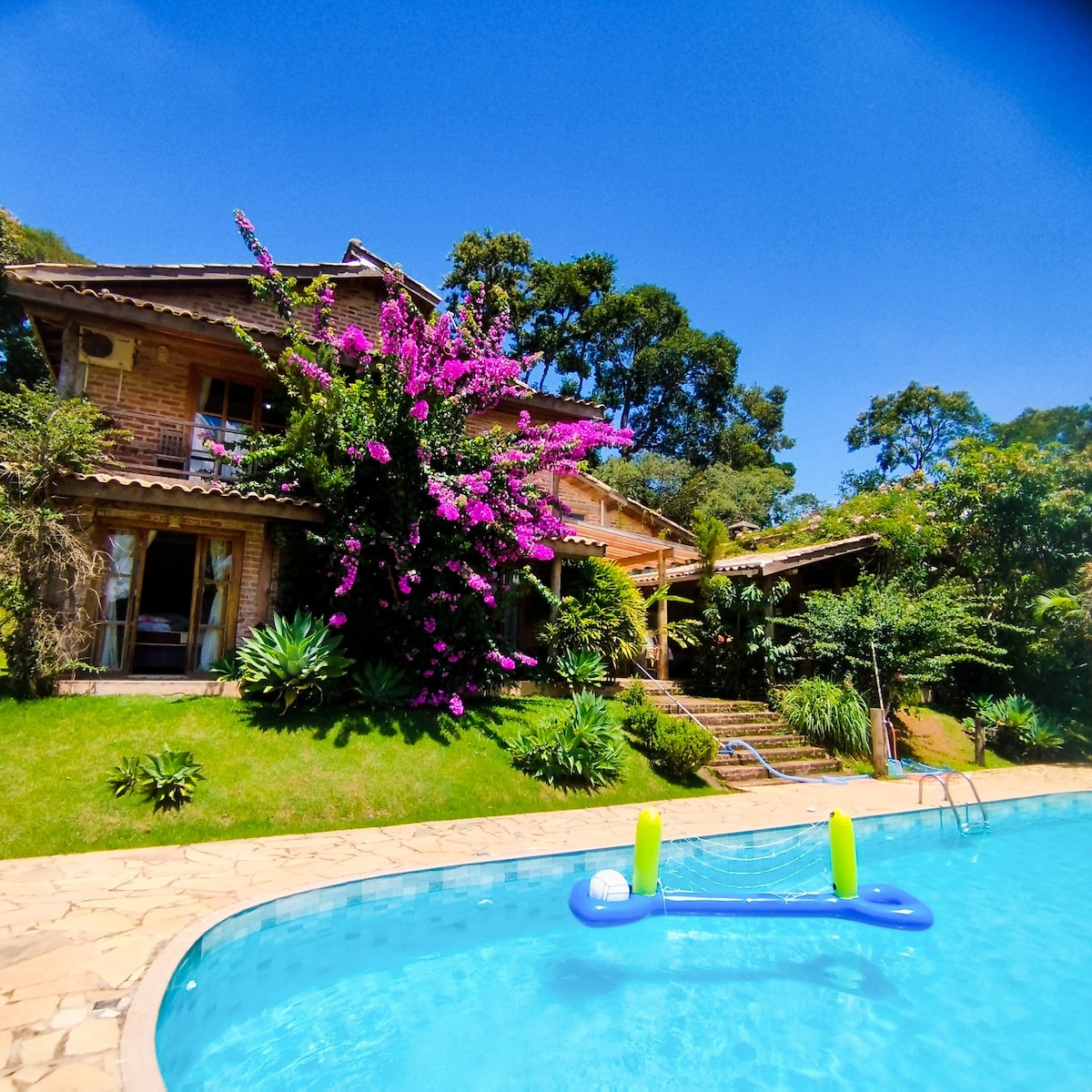 Spektakularna Chalé se nahaja na vrhu čudovite gore med krajema Bragança Paulista in Tuiuti. Bližnja tržnica in restavracije z dostavo. Jezero za ribolov. Ekološki sadovnjak in zelenjavni vrt, klimatiziran bazen brez klora, hišne živali, nogometno igrišče, žar, kamin. Ekskluzivna domača pisarniška soba z odličnim omrežjem Wi-Fi. Hišni ljubljenčki so dobrodošli. Posteljnina in kopalna posteljnina sta na voljo. Dovoljen je glasen hrup. Namestitev ima še eno hišo, ki je najeta za to sezono.
