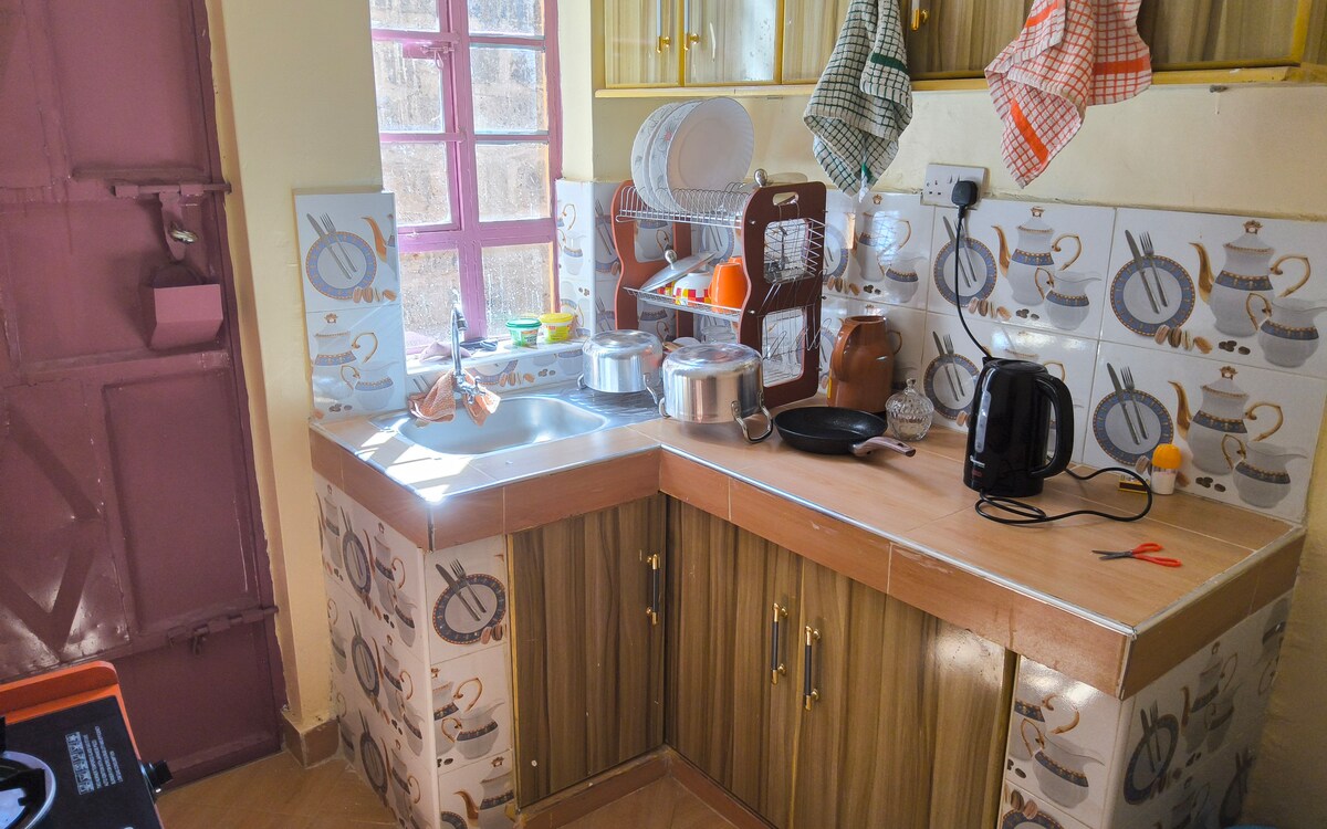 Dobrodošli v našem čudovito oblikovanem minimalističnem prenočišču, ki se nahaja na mirni in mirni lokaciji. Popoln prostor za počitek in počitek po dnevnem vrvežu z odličnim Wi-Fi-jem. Dnevni prostor, obdan z naravno sončno svetlobo, je odličen za uživanje in pomlajevanje. Kuhinja je dobro opremljena, zato je priprava obrokov enostavna in hitra. Noči so tihe, globoko se naspite, se zbudite ob pesmi ptic, osveženi in pripravljeni na nov dan. Od Muranga CBD je oddaljen 1 km.
