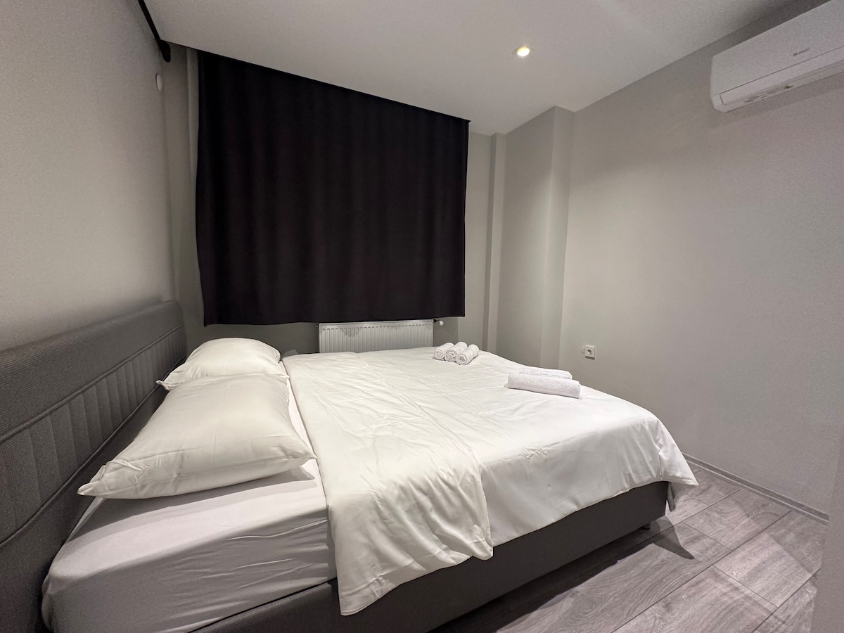 Udobno bivanje vas čaka v našem elegantnem stanovanju 1+1 v Antaliji! Naše stanovanje je idealno za kratkotrajna in dolgotrajna bivanja. Velik balkon (pogled na letališče), bazen, popolnoma opremljena kuhinja (hladilnik, pomivalni stroj in pralni stroj), pametna televizija, Wi-Fi in klimatska naprava v vseh sobah. Spodaj je nakupovalno središče Migros, pekarna, kavarne in restavracije. 3 minute do letališča Od plaže Lara je oddaljen 10 minut, od turističnih območij pa 20 minut. Naša stanovanja so skrbno in profesionalno očiščena