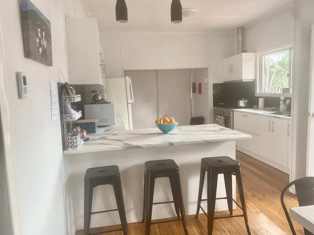 Bring the whole family to this great place with lots of room for fun, in a quiet area but still located close in town and tourist sites. Split system air conditioner with large open plan kitchen with granite top benches, fully equipped with dining and lounge, TV, washing machine, 3 bedrooms, 2 queen beds, plus1 single, plus office, 2 bathrooms including an ensuite in the main bedroom, plenty of outdoor space and undercover secure parking. It is fully fenced for privacy and safety for family.