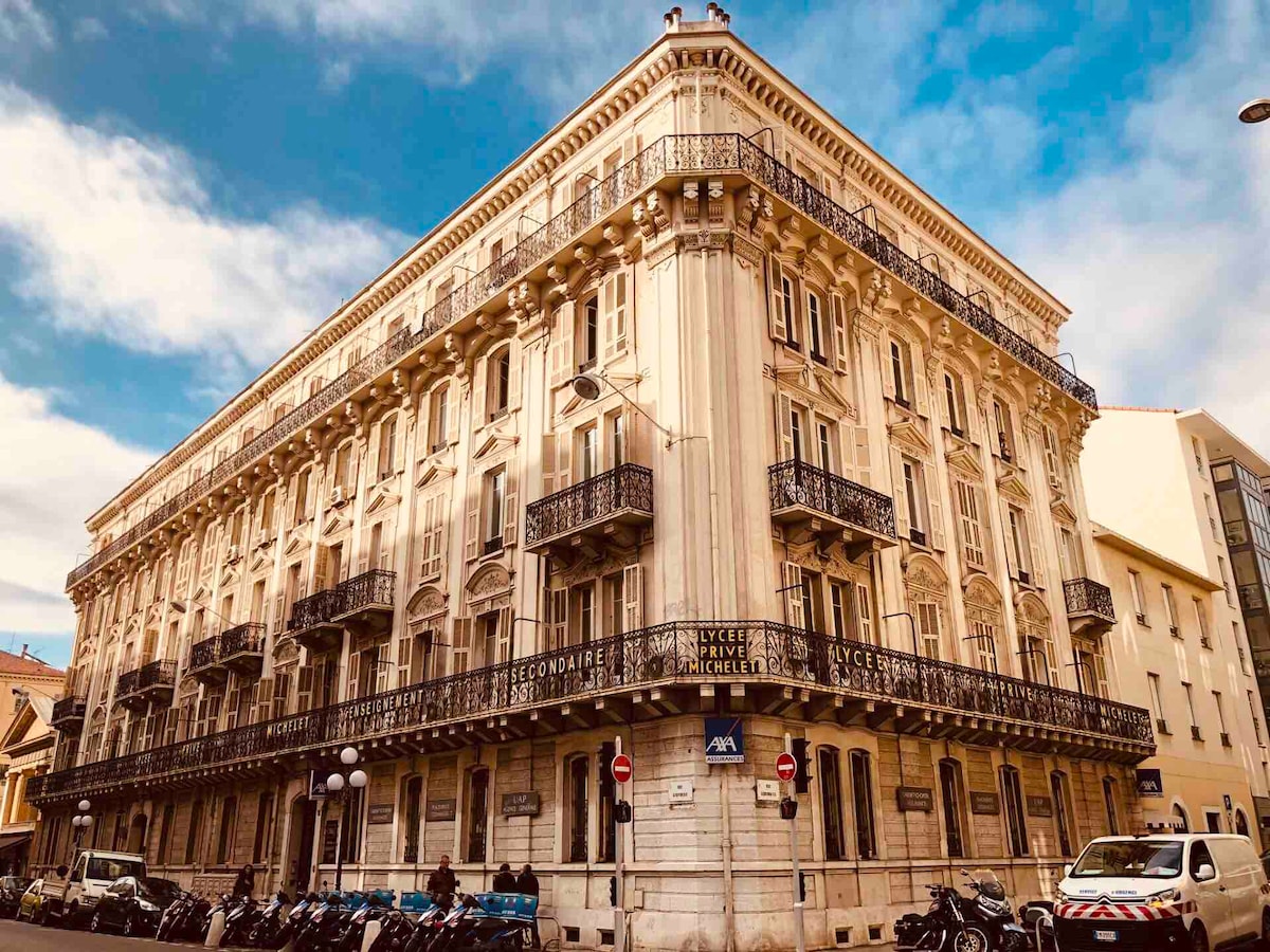 Ob vhodu v staro Nico, blizu tramvaja številka ena, čudovito stanovanje z neodvisno spalnico, sončno in z lepim razgledom, značilnim za staro mestno jedro. To popolnoma prenovljeno stanovanje ➡️ se nahaja v 3. nadstropju brez dvigala in nudi kakovostne storitve. Klimatska naprava, TV, Wi-Fi. Opremljena kuhinja, pomivalni stroj, pralni stroj, hladilnik, zamrzovalnik, tradicionalna pečica in mikrovalovna pečica. Kopalnica s prho, umivalnikom in straniščem, dostopna iz spalnice.