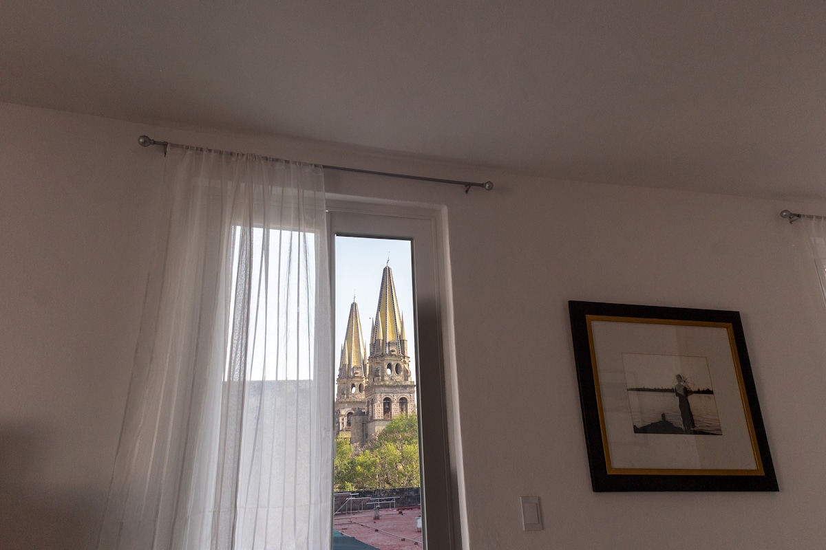 Uživajte v edinstvenem bivanju v osrčju Guadalajare, le eno ulico stran od katedrale. Obnovljeno kolonialno predelano stanovanje nudi veliko zakonsko posteljo, raztegljiv kavč, zasebno kopalnico in popolnoma opremljeno kuhinjo. Sprostite se na zasebni terasi ali na strehi s skupnim bazenom z osupljivim razgledom na mesto. Neodvisen vhod s kodo, hitrim Wi-Fi-jem, televizorjem in ventilatorji. Do muzejev, restavracij in kavarn se lahko sprehodite peš. Javno parkirišče je pol ulice stran.