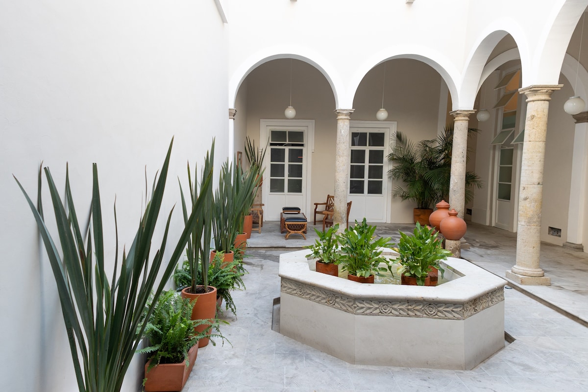 Luksuzno novo stanovanje, ki se nahaja v obnovljenem kolonialnem dvorcu Architectural Award. Edinstvena lokacija v bližini vseh glavnih znamenitosti zgodovinskega središča okrožja. Razkošno in brezhibno urejeno se boste počutili kot doma. Odličen dizajn, poln naravne svetlobe. Idealno za raziskovanje čarovnije, kulture in tradicije, ki jih ponuja mesto. Ogromna strešna terasa, polna dreves, idealna za druženja. Potopite se v bazen s pogledom na spektakularen razgled na mesto.