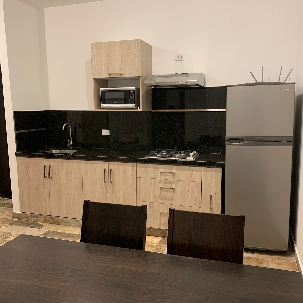 Mini apartma na severu mesta, v zelo varni skupnosti. Uživajte v prijetnem in udobnem prostoru z zasebnim dostopom in parkirnim mestom. V bližini nakupovalnega središča Galerias, bolnišnice Muguerza, univerze UANE, TEC de Monterrey, Plaza Villalta, Médica Bosco, kinodvoran, nakupovalnih središč, restavracij in barov. Uživajte v prostoru, opremljenem z zajtrkovalnim kotičkom, mikrovalovno pečico in mini hladilnikom. 50-palčni televizor z vsemi pretočnimi storitvami: Netflix, HBO Max, Disney+, Paramount+ in visokohitrostnim brezžičnim internetom.