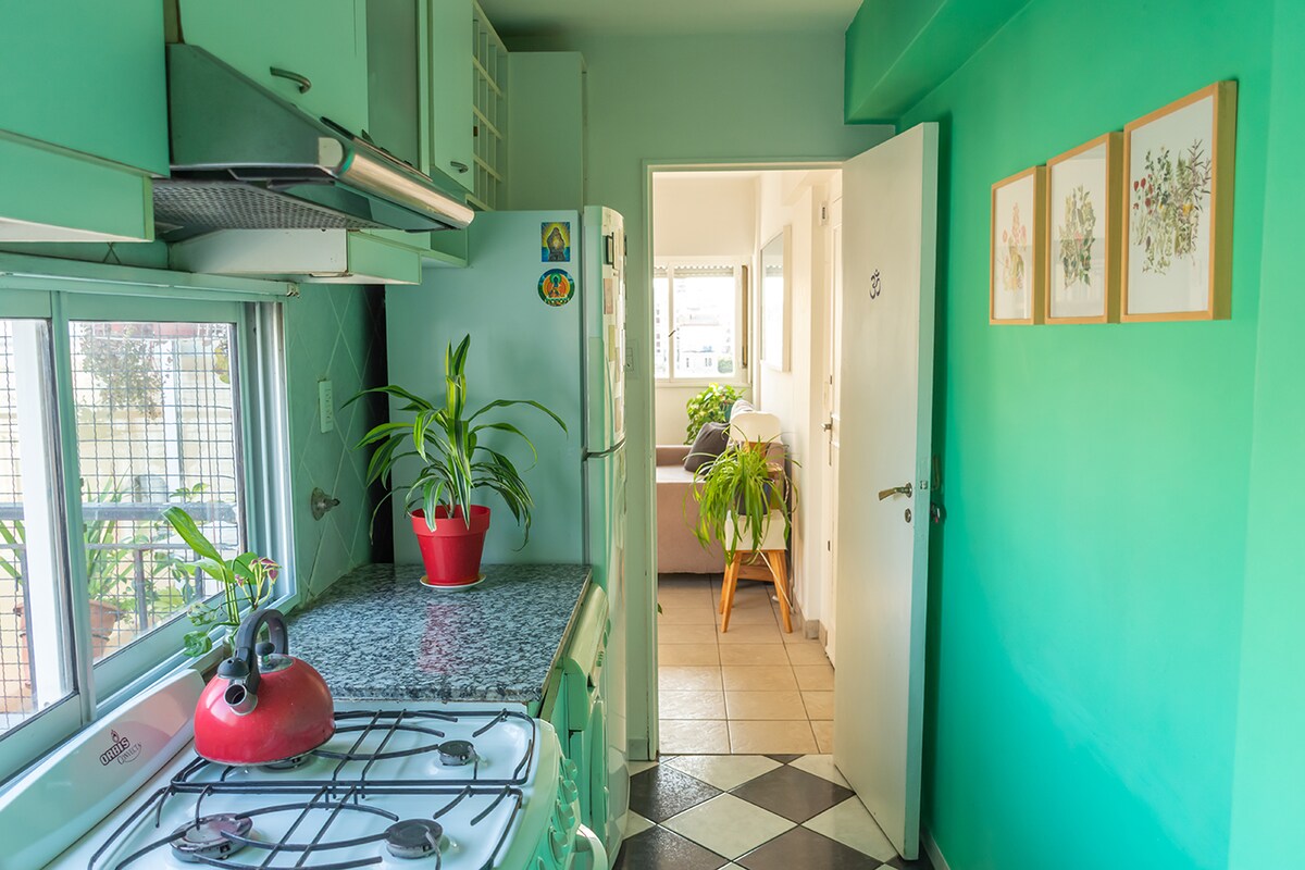 Decorado y amueblado con amor y calidez, este lugar especial está cerca de todo, va a ser muy fácil planear tu visita. Situado en una ubicación privilegiada: en pleno corazón del mítico barrio de San Telmo. Muy luminoso durante todo el día ya que tiene ventanas hacia los 4 puntos cardinales. Maravillosa vista abierta desde un noveno piso. Equipado para que todo en tu estadía sea simple, confortable y placentero.