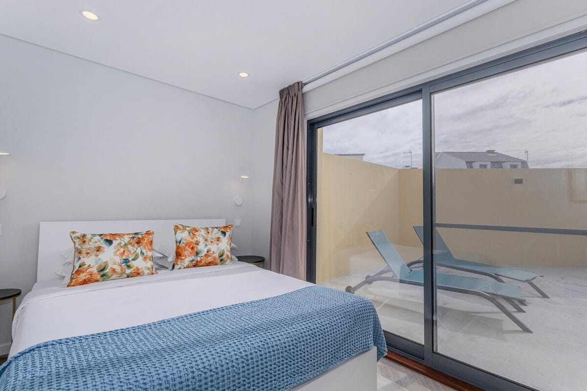 Exclusive modern design apartment with a terrace in front of the sea overlooking the ocean, private bathroom, air conditioning and Wi-Fi. Located in Ponta Delgada on a beautiful avenue by the sea where you can enjoy a pleasant walk or ride a bike. Given its privileged location, it is possible to enjoy the proximity of the city center and the beach without compromising your peace of mind.