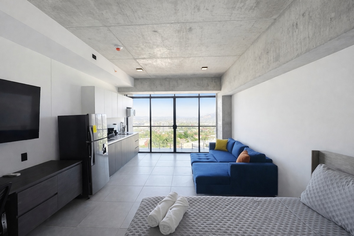Moderno estudio en Art Haus San Benito, ubicado en la exclusiva Zona Rosa. Espacio elegante, funcional y lleno de luz natural, con espectaculares vistas al este de la ciudad. Edificio con amenidades tipo hotel (terrazas, salón de juegos, gym, coworking) rodeado de supermercados, restaurantes, cafés, bancos, centros comerciales. Perfecto para viajeros de negocios y turistas en la mejor zona de San Salvador.