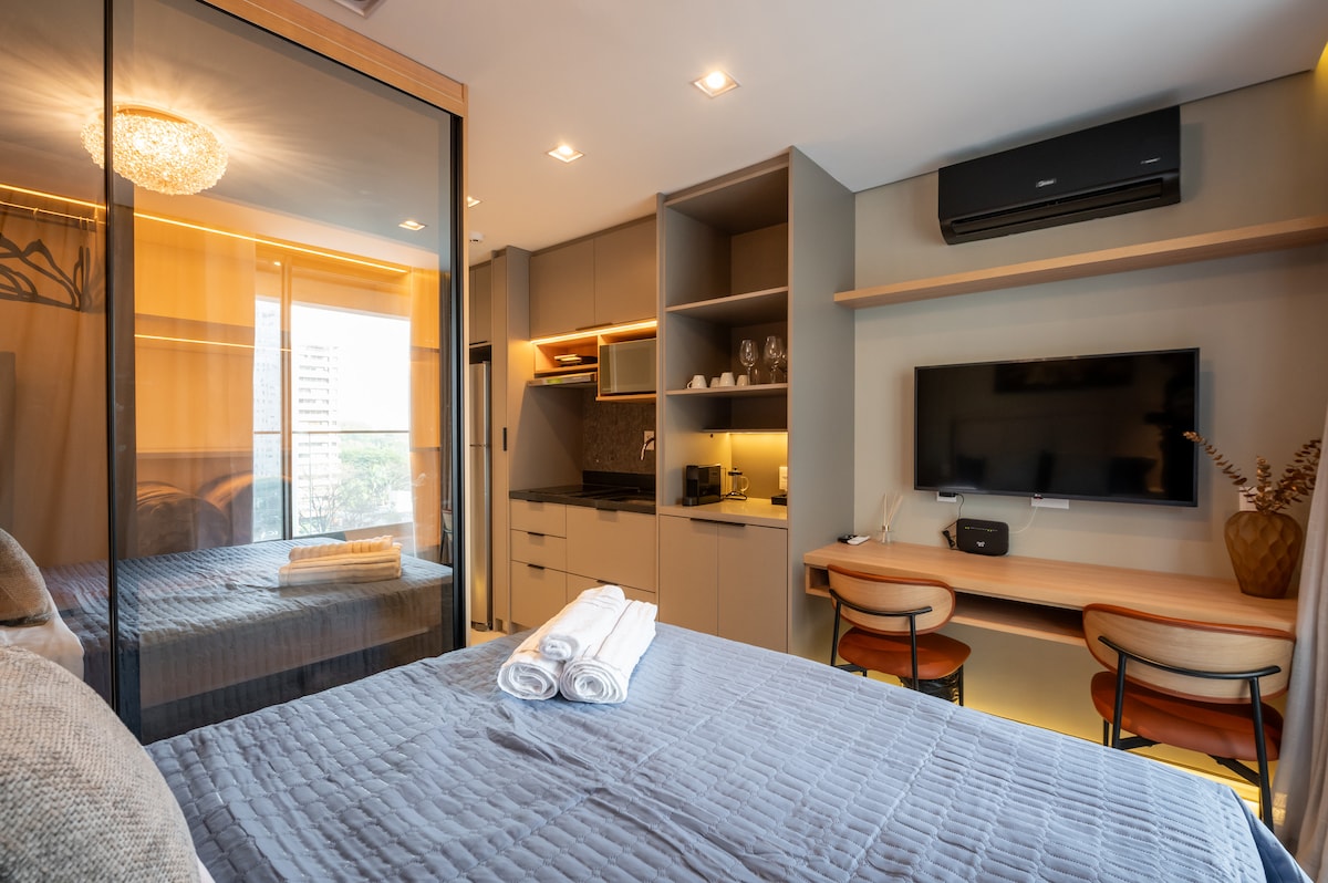 Udoben Airbnb sredi mestnega središča Street Urban Center, obdanega z drevesi, poleg največjega tehnološkega središča SP, Santa Efigênia. Prostor ima toplo in hladno klimatsko napravo, udobno posteljo, prijeten balkon za uživanje v mestnem oddihu, Smartv, hiter Wi-Fi, polno kuhinjo za udobno bivanje, brisače odlične kakovosti, odlično osvetlitev, poleg stavbe pa je na voljo tudi pralnica, bazen, savna, digitalni receptor in različne trgovine v bližini.