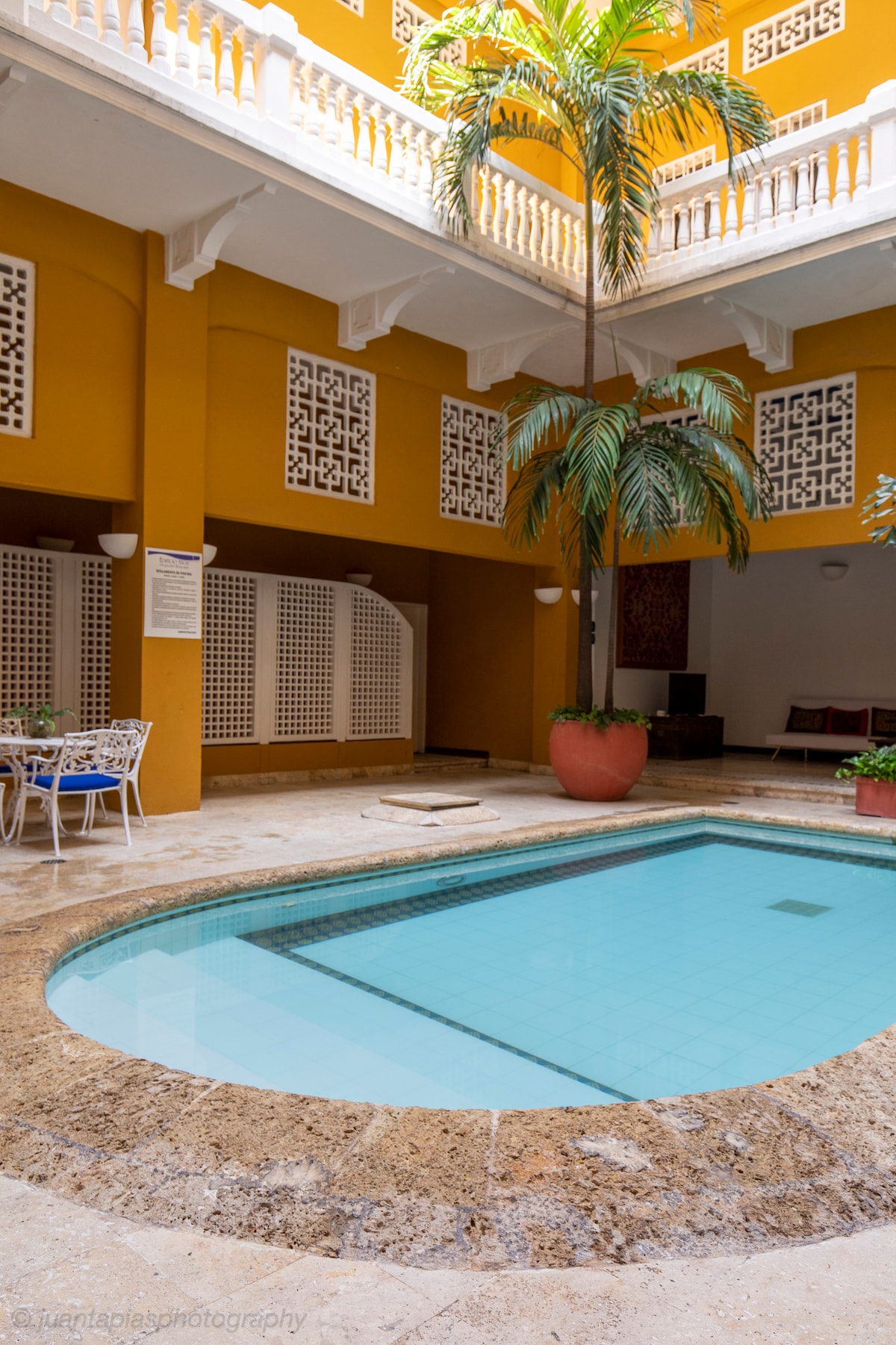 Bivanje v dvorcu iz 17. stoletja z balkonom, ki gleda na ulico, v osrčju obzidanega mesta Cartagena de Indias je pravi privilegij. Z balkona ob jutranji kavi ali kozarcu vina uživajte v prvovrstnem pogledu na živahno karibsko življenje na znameniti ulici Calle Santo Domingo. Le nekaj korakov od trgov, muzejev, kavarn in najboljših restavracij v mestu. Predelano stanovanje, ki je izjemno lepo opremljeno, ponuja prefinjeno doživetje umetnosti in kulture, kjer se združujeta zgodovina in udobje. Doživite čarovnijo ✨