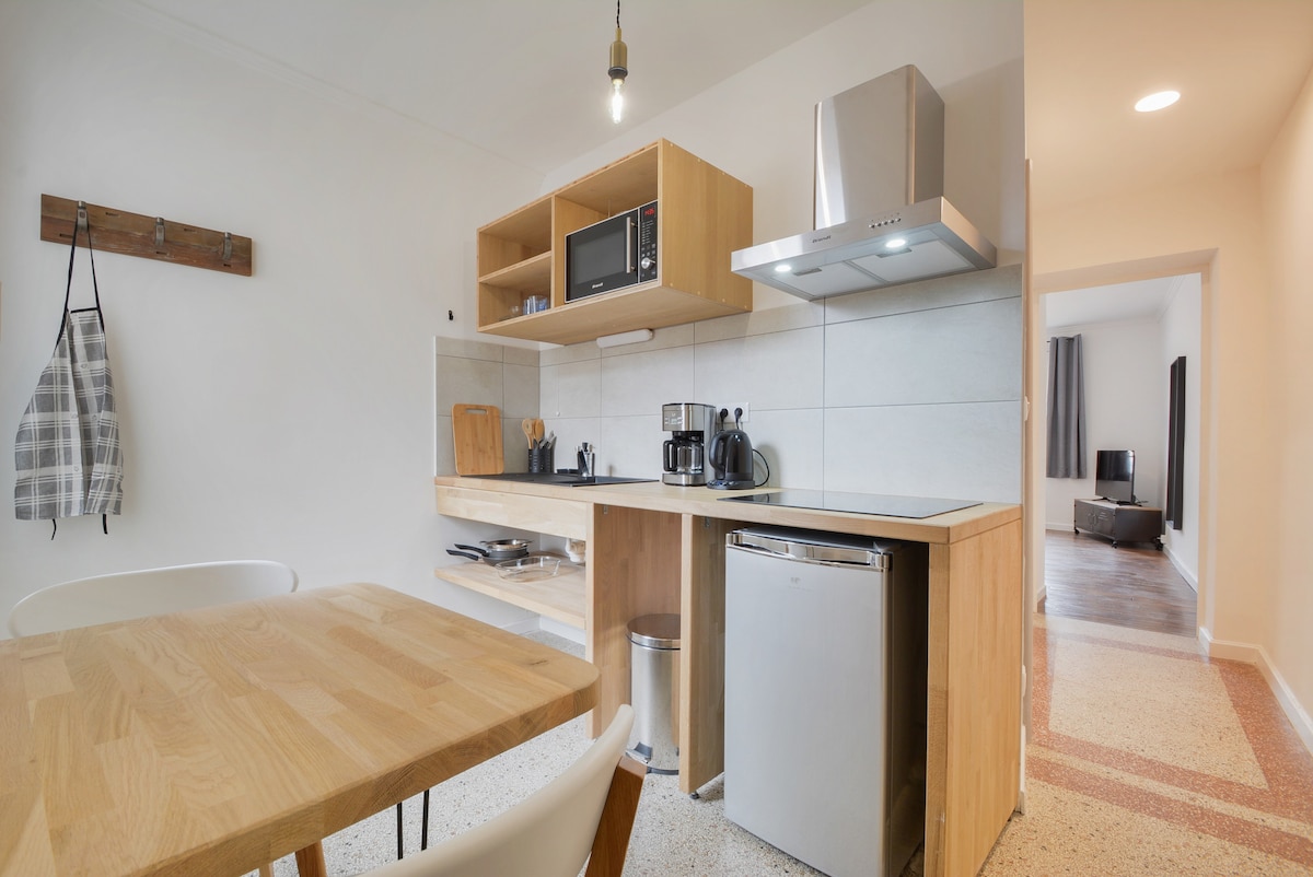 Garsonjera 32 m2 v DRC v starem mestnem jedru. Parkiranje: širina 215 cm, tip Peugeot 3008 največ 5 minut hoje. Obstajajo tudi druge širše možnosti parkiranja vozil. Cena parkiranja 10 €/noč Kraj Stan 5 minut hoje. Vse, kar morate storiti, je, da odložite prtljago. Netflix, Prime, Wi-Fi. Pomembno: prisotnost senzorja, ki zazna onesnaževanje s hrupom. Ta senzor je legalen in prijazen do zasebnosti. Zabave so prepovedane. Profili z mnenji ++ so obvezni za sprejemanje