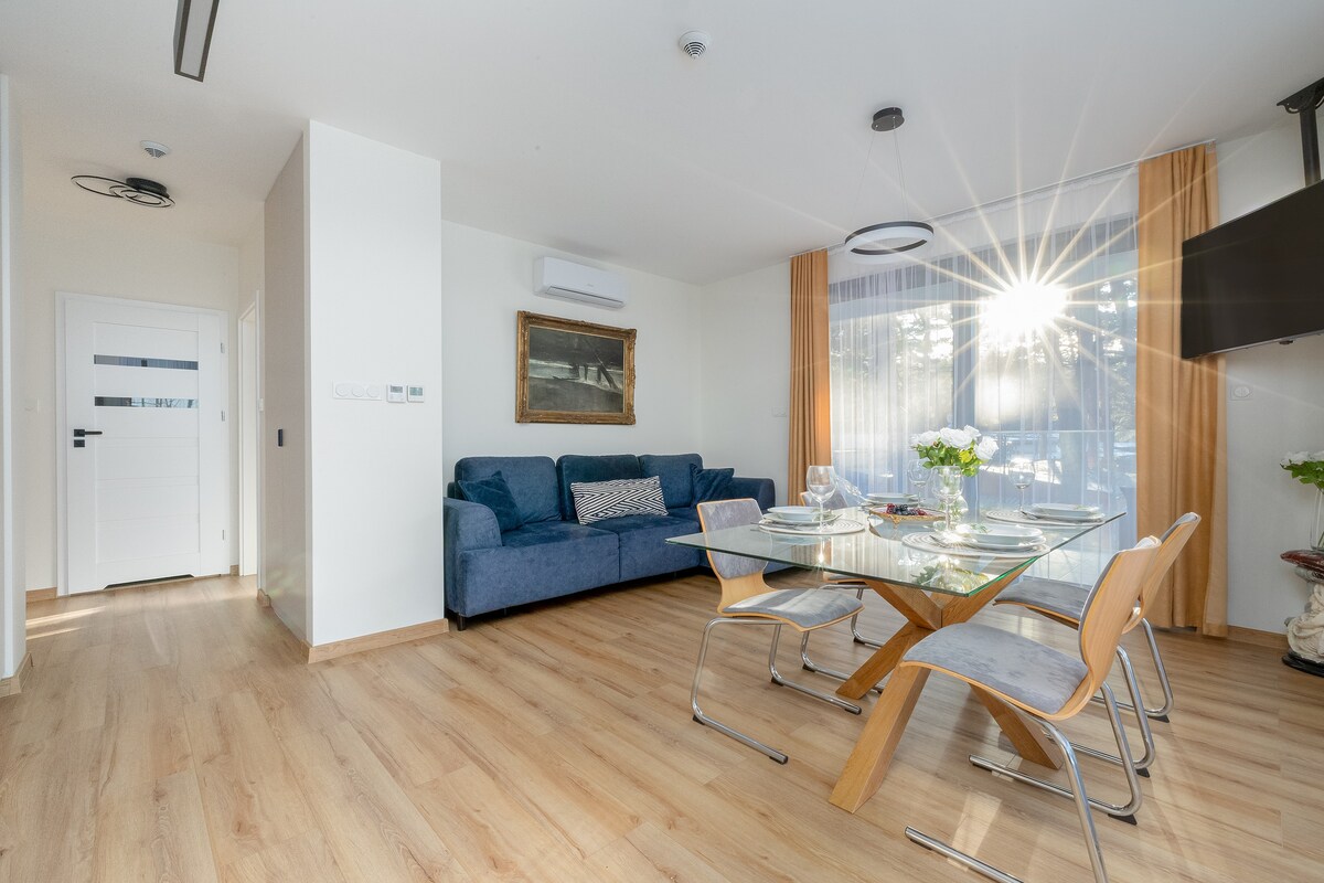 Klimatyzowany apartament z tarasem i ogrodem