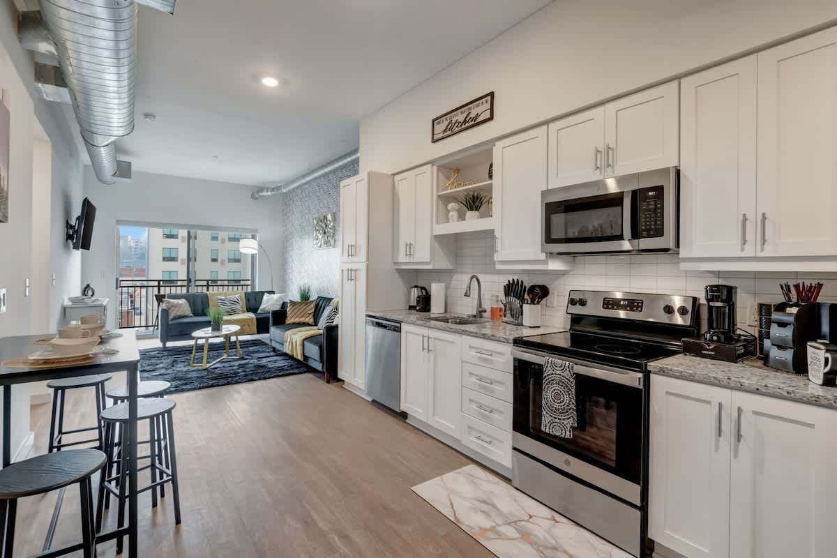 Prepustite se živahni energiji Nashvilla v tem elegantnem enosobnem stanovanju, ki se nahaja le nekaj korakov od legendarnega vrveža Broadwaya. To elegantno luksuzno prenočišče mojstrsko združuje prefinjeno oblikovanje in prijetno udobje – idealno za romantične pobege ali poslovne potnike, ki potrebujejo uglajeno in brezskrbno bivališče. Vsaka premišljena podrobnost zagotavlja brezhibno in vrhunsko bivanje, medtem ko so vam znamenite znamenitosti, restavracije in živa glasba na dosegu roke.