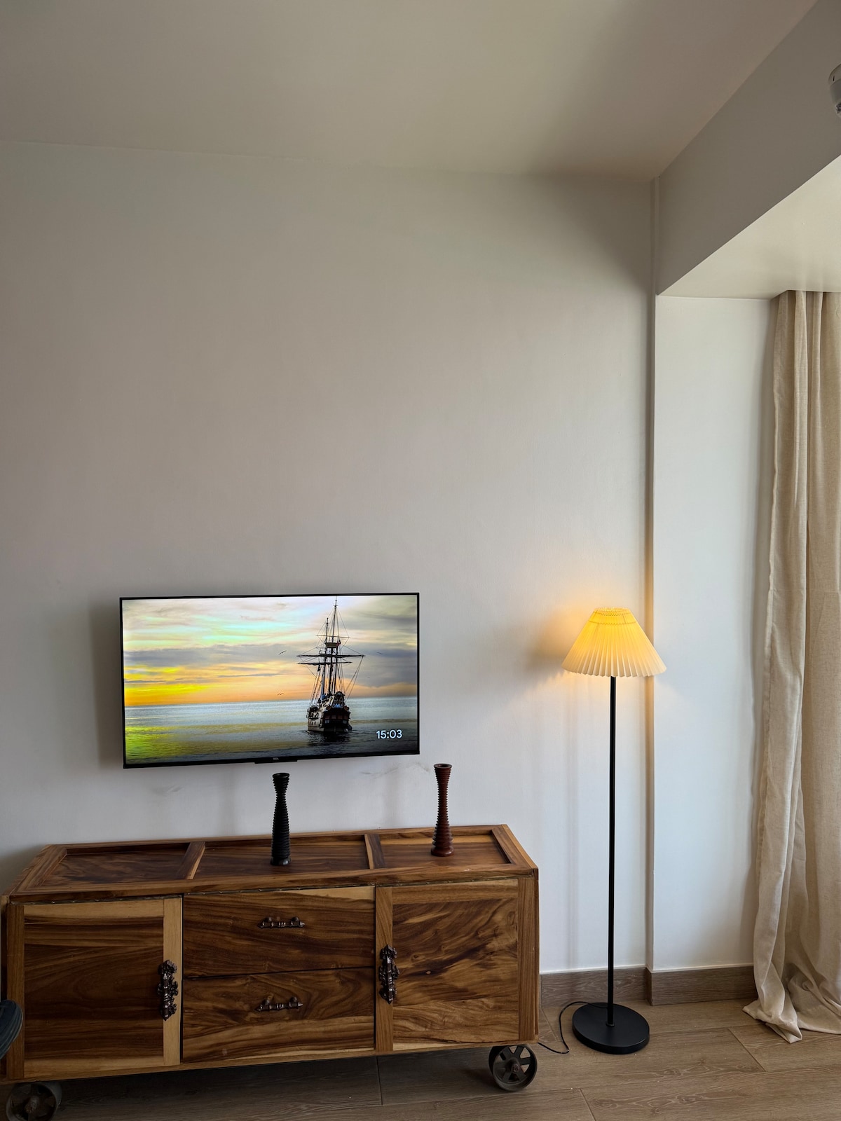 Razkošno stanovanje, ki se nahaja visoko nad mestom, ponuja osupljiv panoramski razgled na živahno metropolo in očarljive sončne zahode. To je več kot le prenočišče. Gre za potopitveno doživetje udobja, elegance in neprimerljivega mestnega življenja. Ko vstopite v prenočišče, vas bo pričakala obsežna dnevna soba, obdana z naravno svetlobo. Zasnova odprtega koncepta brezhibno združuje dnevne, jedilne in kuhinjske prostore ter ustvarja popolno okolje za intimne družinske trenutke in živahna srečanja.