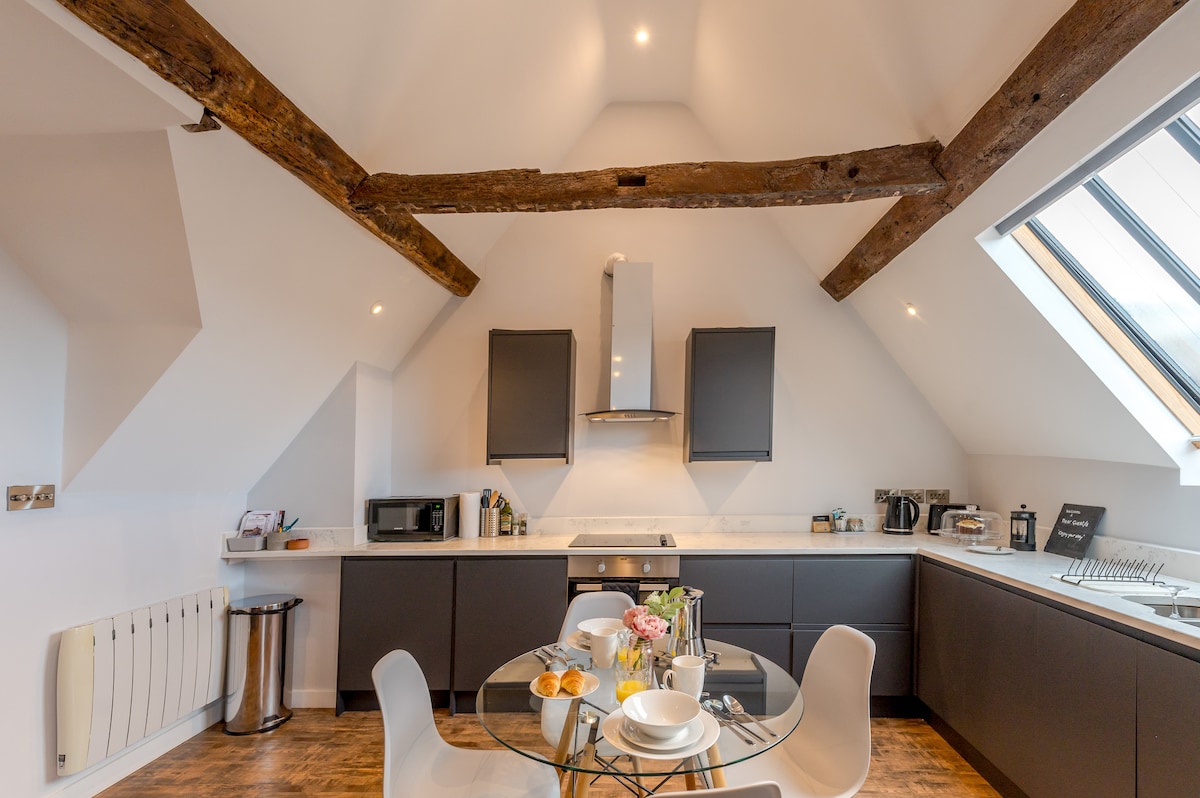 Experience the charm of Shrewsbury’s medieval history from our renovated second-floor apartment, located in the heart of the vibrant town center. Surrounded by an array of restaurants, bars, cafes, and independent shops, the apartment retains many of its original features and offers views over the rooftops. This blend of historic allure and contemporary style makes it an ideal choice for couples, friends, or families visiting for business or pleasure.
