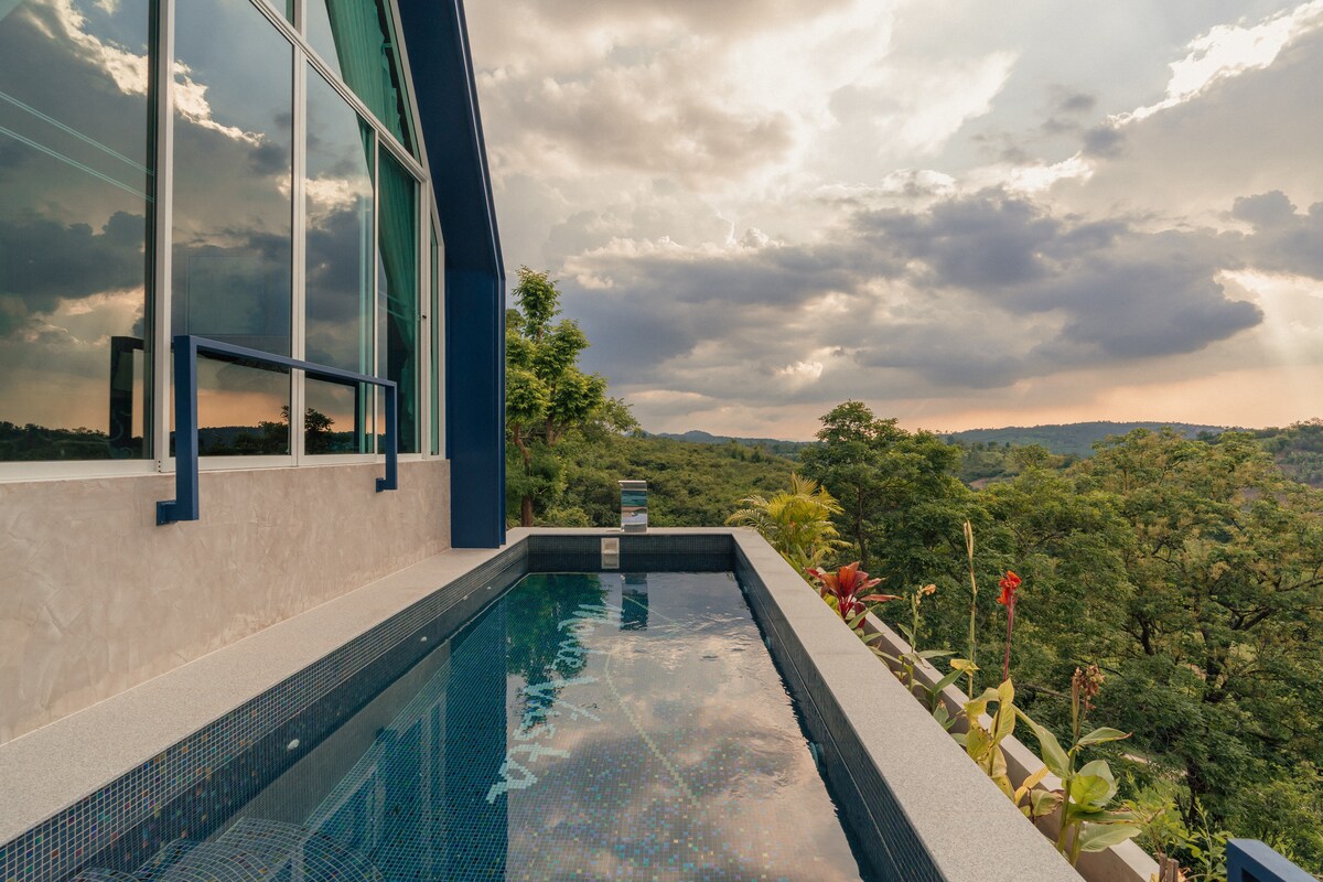 Razkošna zasebna vila z eno spalnico na vrhu hriba s celotno vilo z nordijsko dekoracijo in občutljivo umetnostjo. Vila se nahaja stran od prenatrpanih hotelov, živahnih letovišč in avtomobilske industrije ter ponuja popoln romantičen oddih. Uživajte v zasebnem prostornem bazenu v svoji vili in se potopite v očarljiv neskončni razgled na gore KhaoYai. Popolnoma opremljena kuhinja, zasebna terasa in vse zasebne razkošje v vili je idealna za vse, ki iščejo posebno skrivališče.