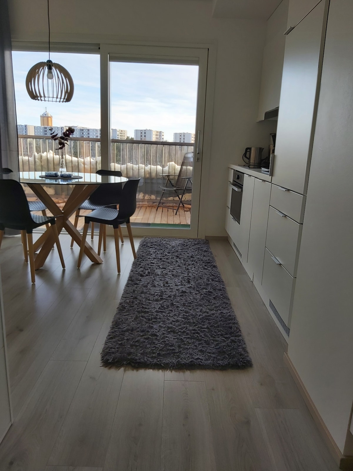 Za vas imam edinstveno, klimatizirano, čudovito opremljeno dvosobno stanovanje v najvišjem nadstropju s savno, ki se nahaja na fantastični lokaciji v bližini središča Oulua. POLNJENJE ELEKTRIČNEGA AVTOMOBILA 10 €/dan. Edinstvena strešna terasa, ki je večja od stanovanja in obrnjena proti jugu, je sanje vsakega ljubitelja sonca. Velika okna in velika drsna vrata na balkon dajejo udoben občutek prostora. Sodobno stanovanje s klimatsko napravo v središču Ouluja lahko sprejme 1–5 odraslih oseb. Vse storitve so na dosegu roke. Brezplačno parkiranje. Odlične dejavnosti na prostem. POLNJENJE ELEKTRIČNIH VOZIL